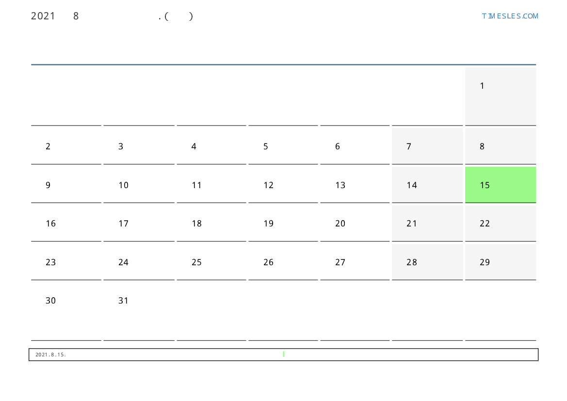 8월에는 31 일 포함됩니다. 이것은 2021 년 8 개월입니다. 올해의 계절 : 여름. 8월 일요일에 시작하여 화요일에 끝납니다. 2021년 8월에 콩고 1 공휴일 및 휴무 있습니다.