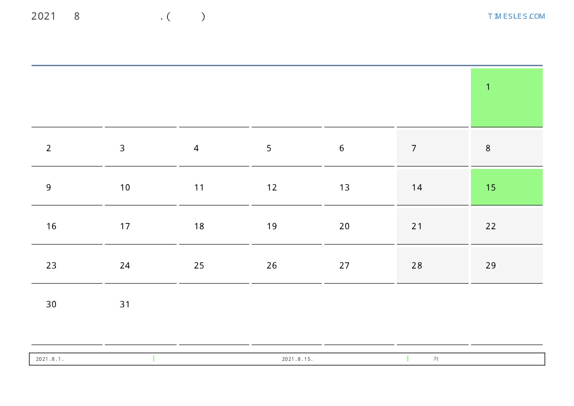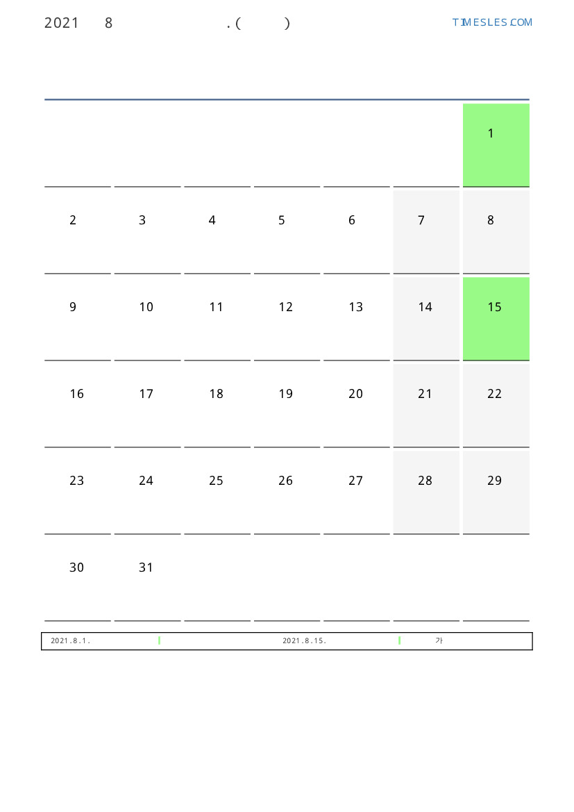 스위스 2021 년 8월 월 공휴일 및 주말 달력