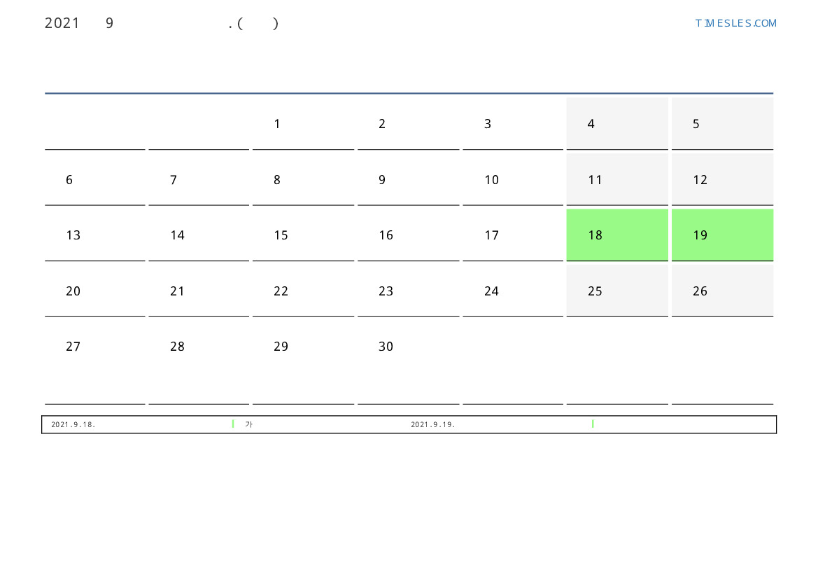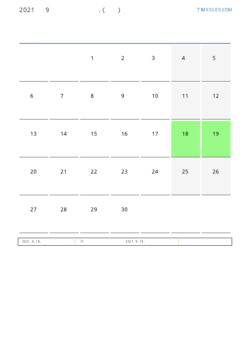 칠레 2021 년 9월 월 공휴일 및 주말 달력