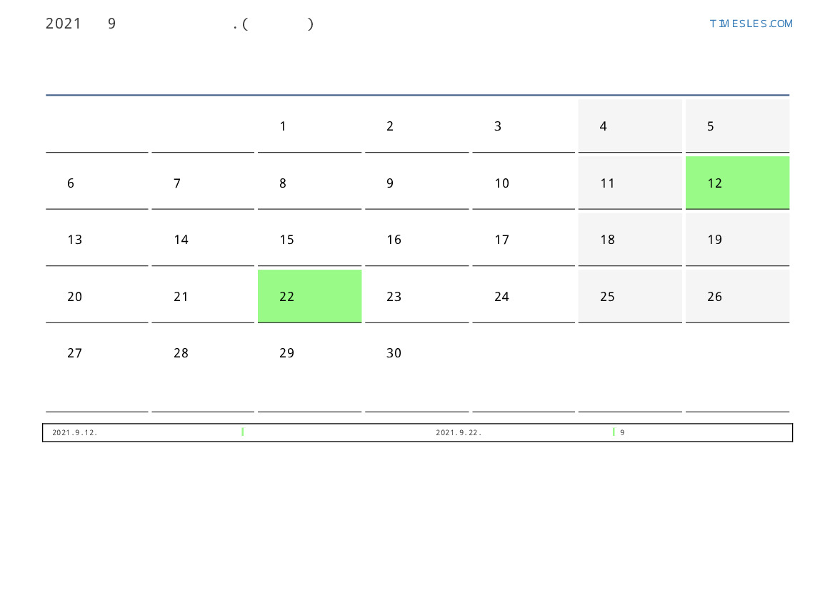 9월에는 30 일 포함됩니다. 이것은 2021 년 9 개월입니다. 올해의 계절 : 가을. 9월 수요일에 시작하여 목요일에 끝납니다. 2021년 9월에 라트비아 2 공휴일 및 휴무 있습니다.