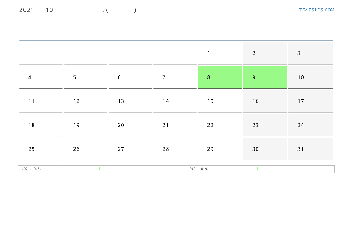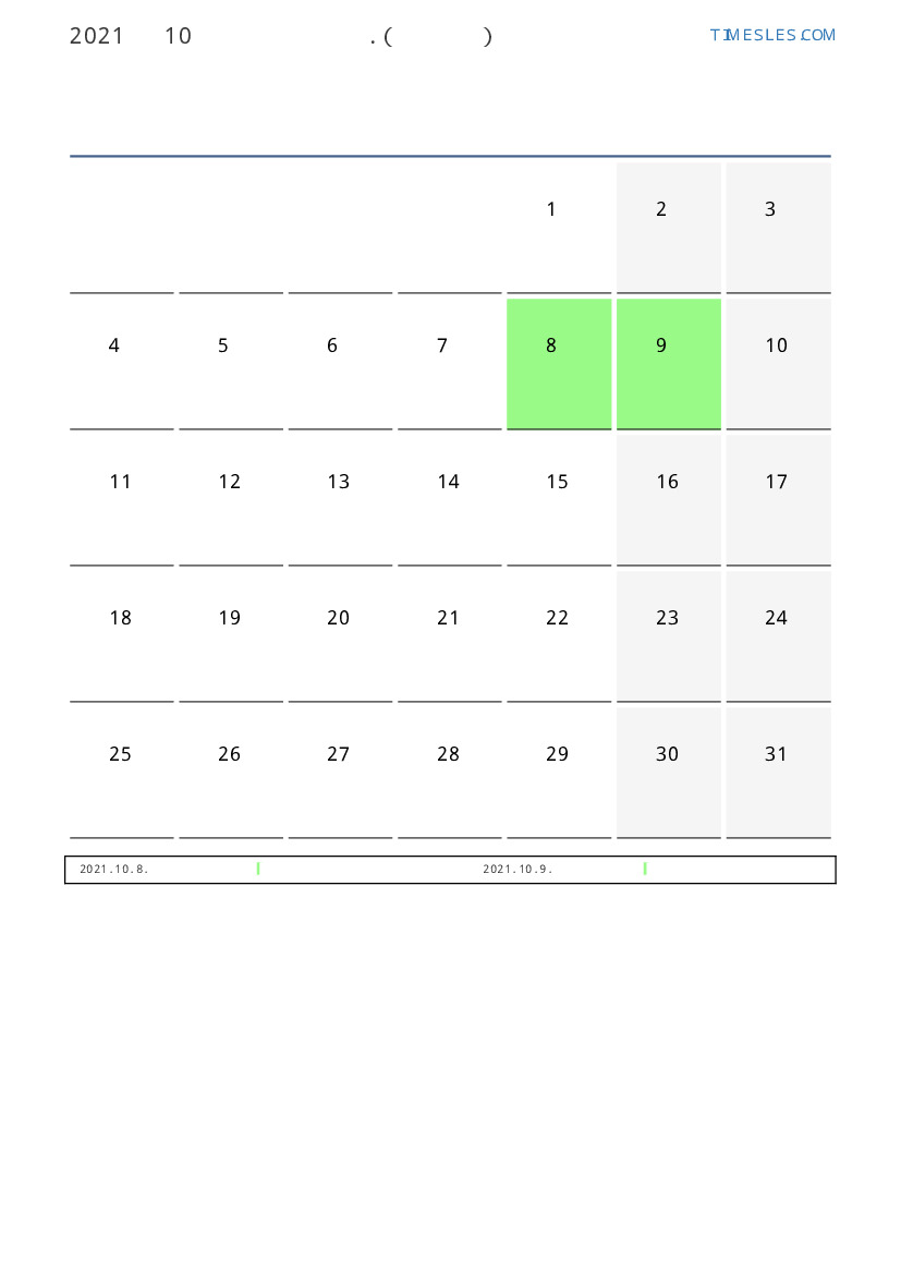 에콰도르 2021 년 10월 월 공휴일 및 주말 달력