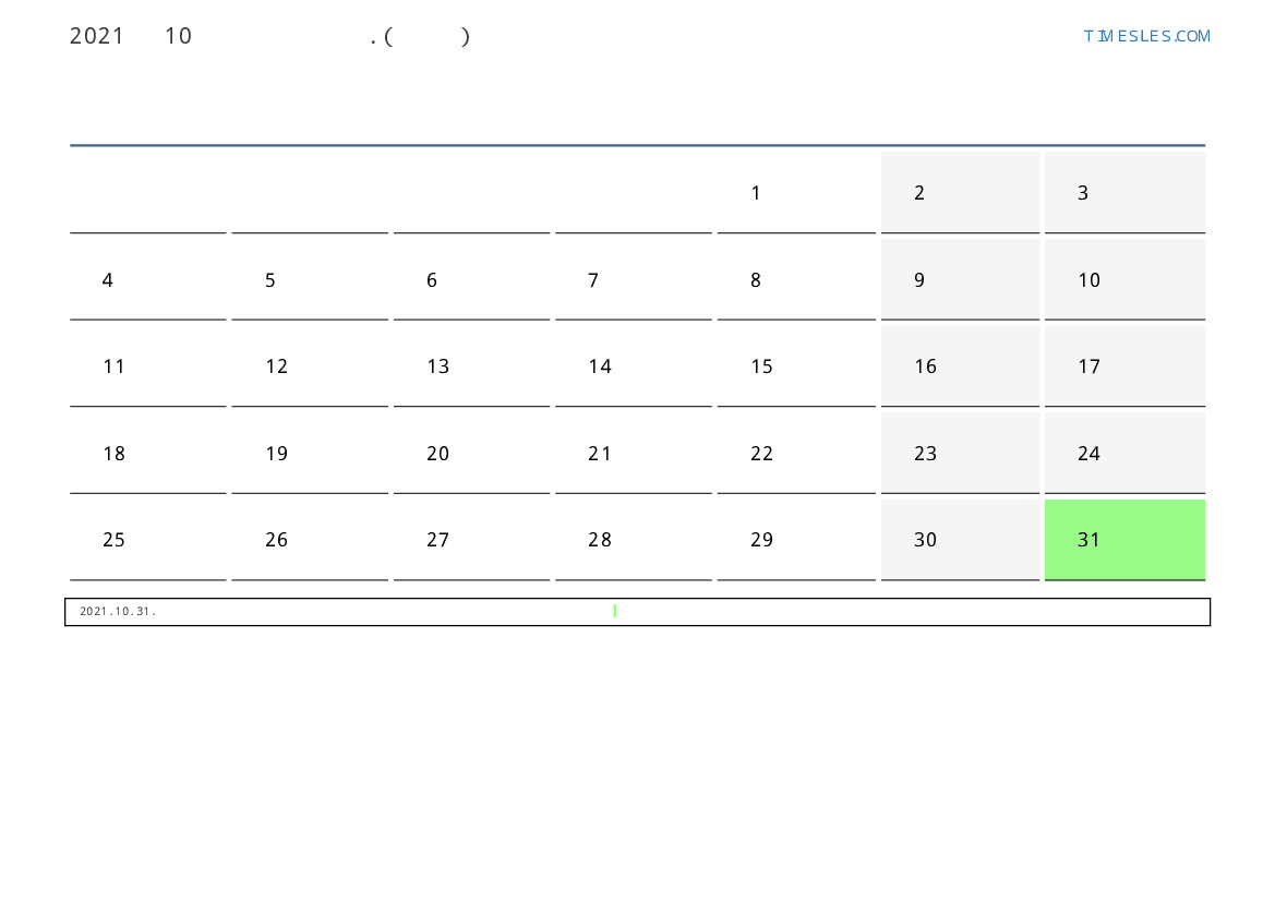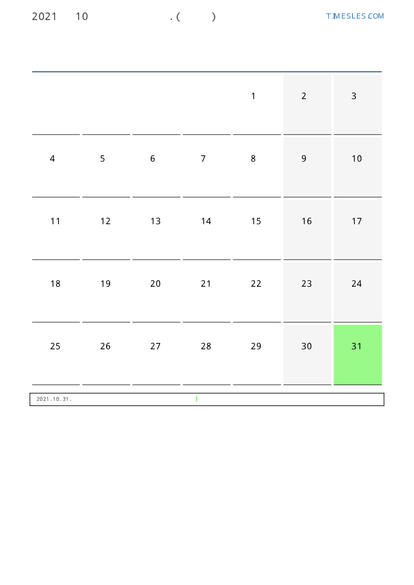 스위스 2021 년 10월 월 공휴일 및 주말 달력