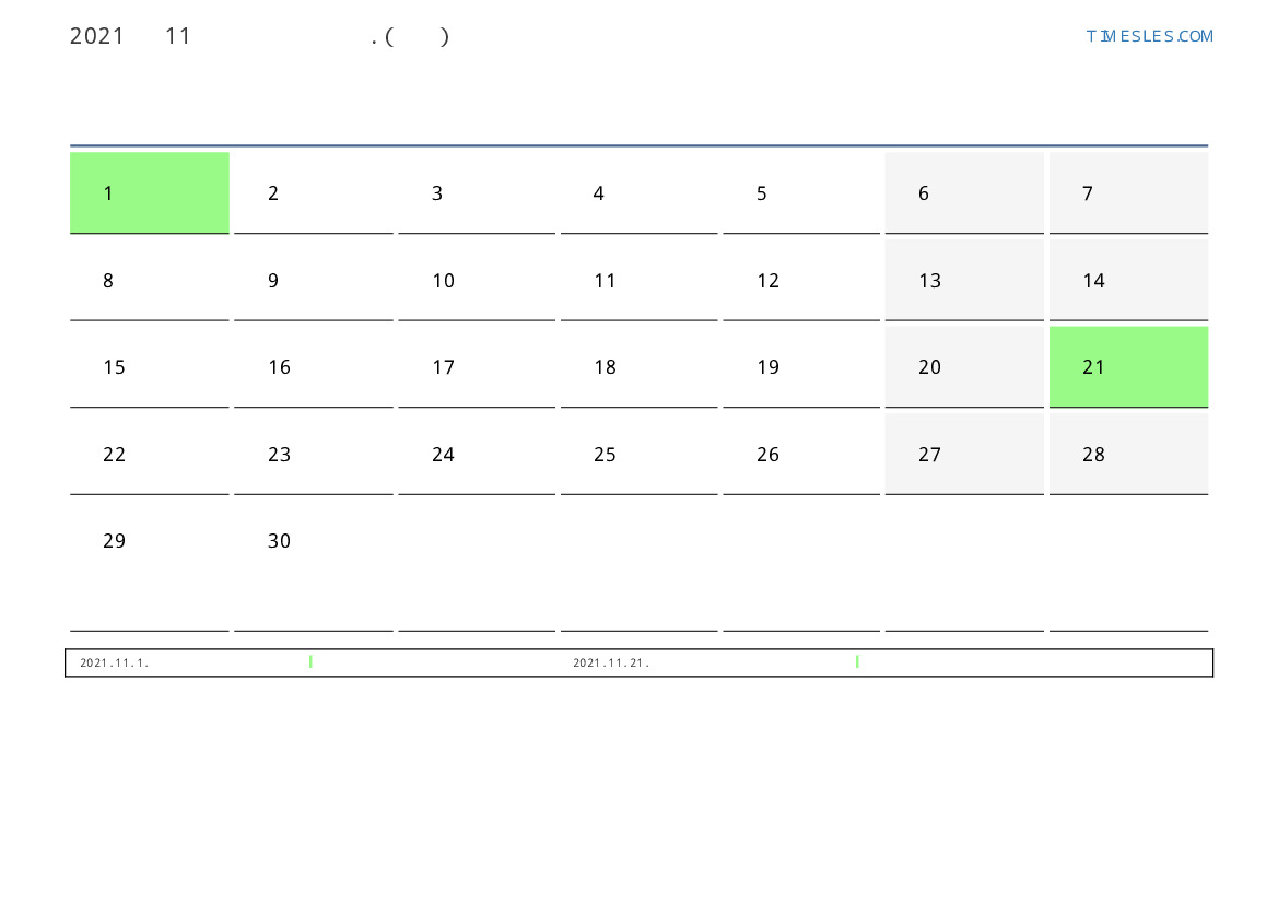 11월에는 30 일 포함됩니다. 이것은 2021 년 11 개월입니다. 올해의 계절 : 가을. 11월 월요일에 시작하여 화요일에 끝납니다. 2021년 11월에 칠레 2 공휴일 및 휴무 있습니다.