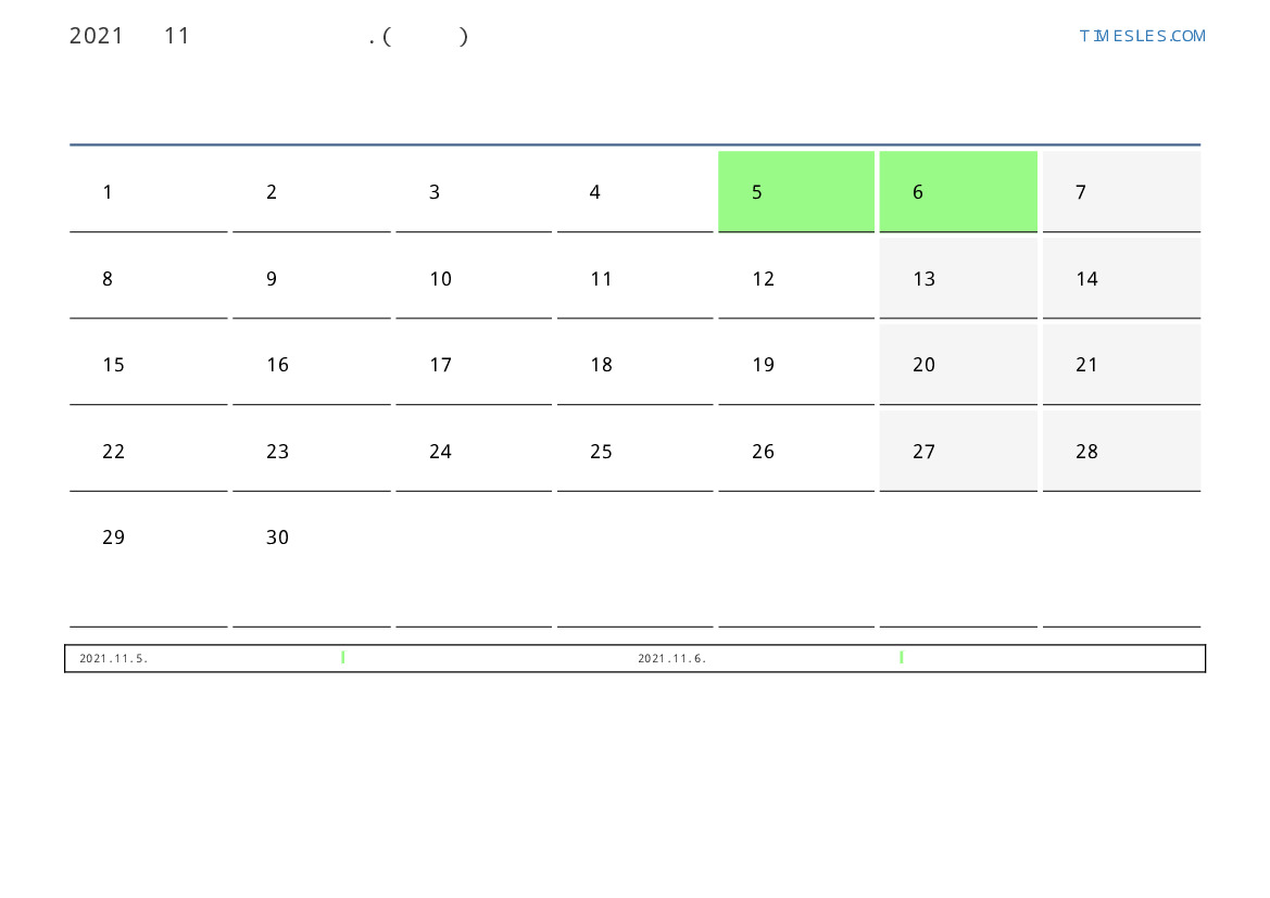 11월에는 30 일 포함됩니다. 이것은 2021 년 11 개월입니다. 올해의 계절 : 가을. 11월 월요일에 시작하여 화요일에 끝납니다. 2021년 11월에 스웨덴 4 공휴일 및 휴무 있습니다.
