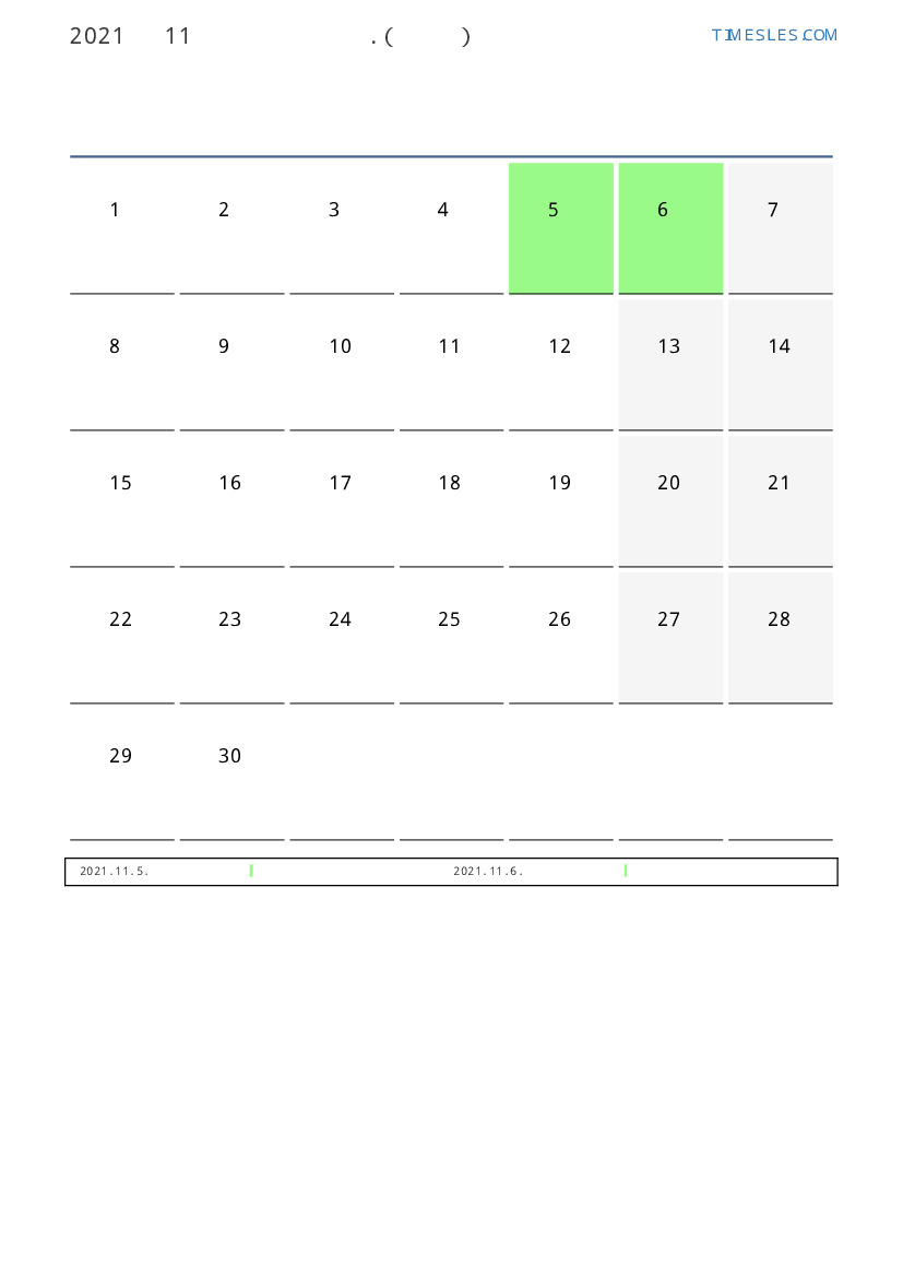 스웨덴 2021 년 11월 월 공휴일 및 주말 달력