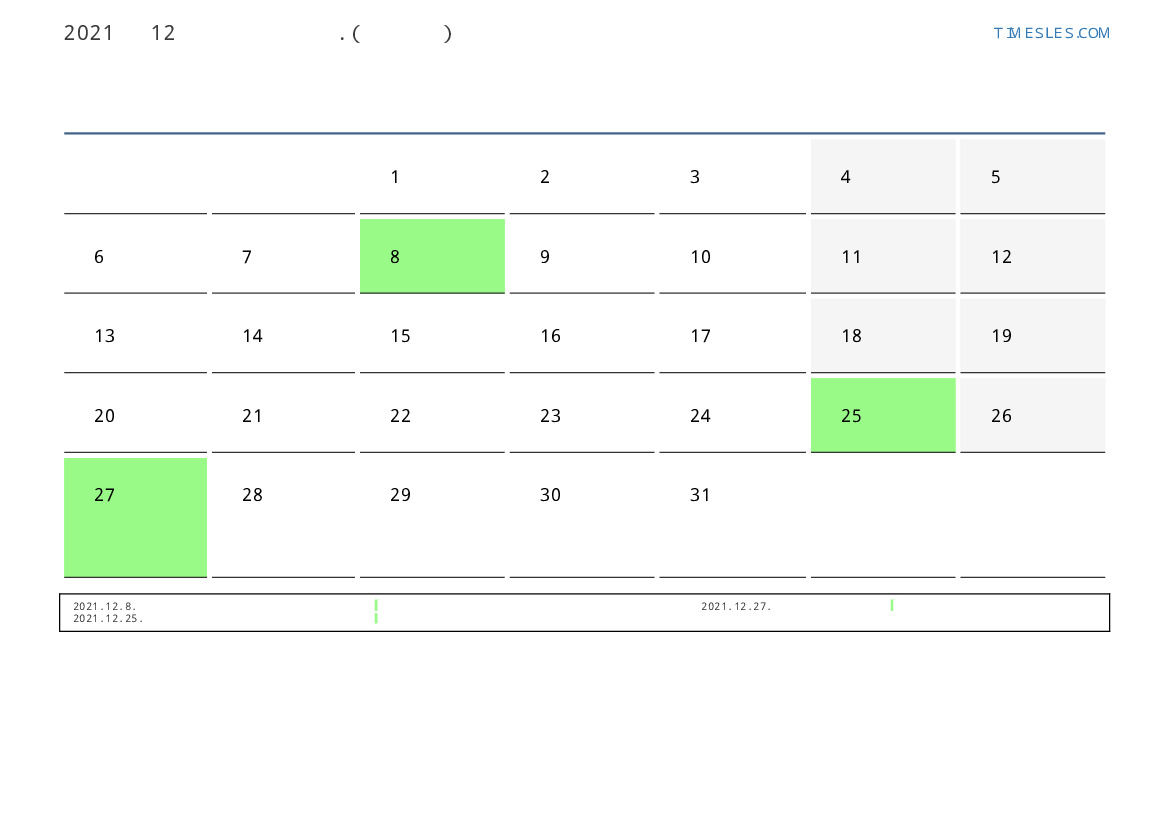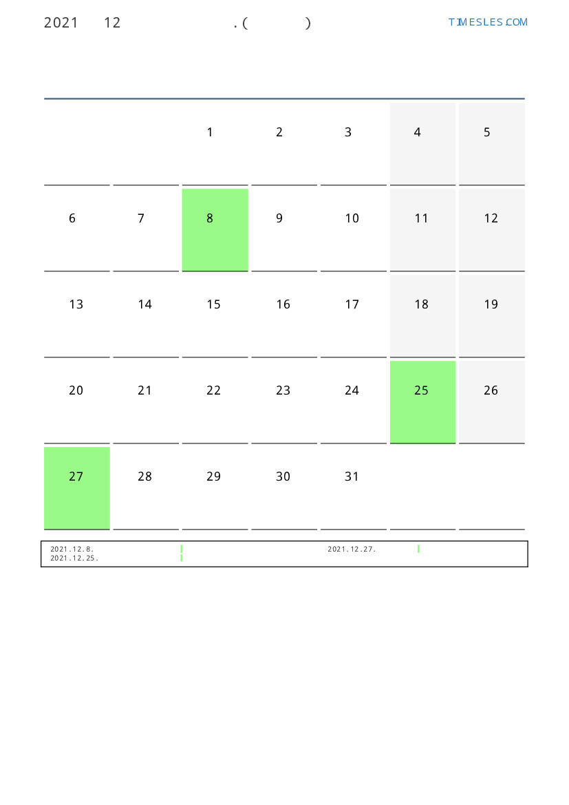 알바니아 2021 년 12월 월 공휴일 및 주말 달력
