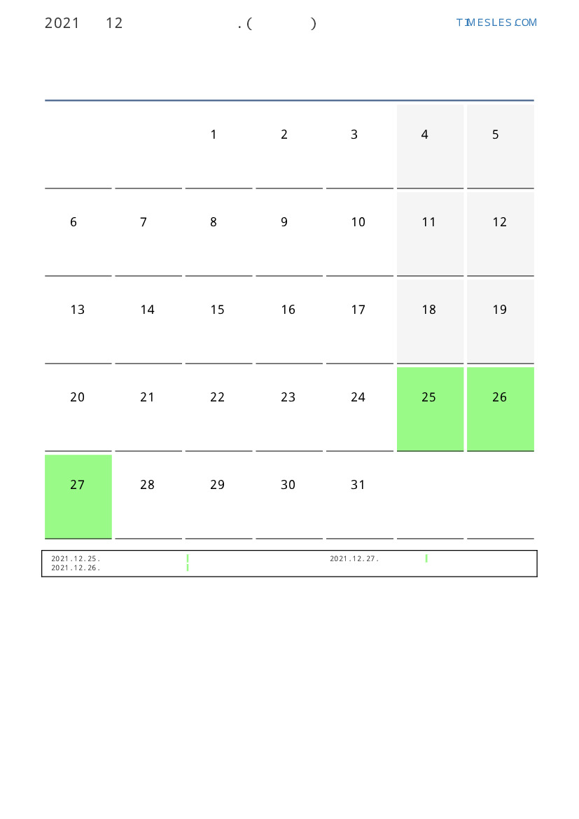 보츠와나 2021 년 12월 월 공휴일 및 주말 달력