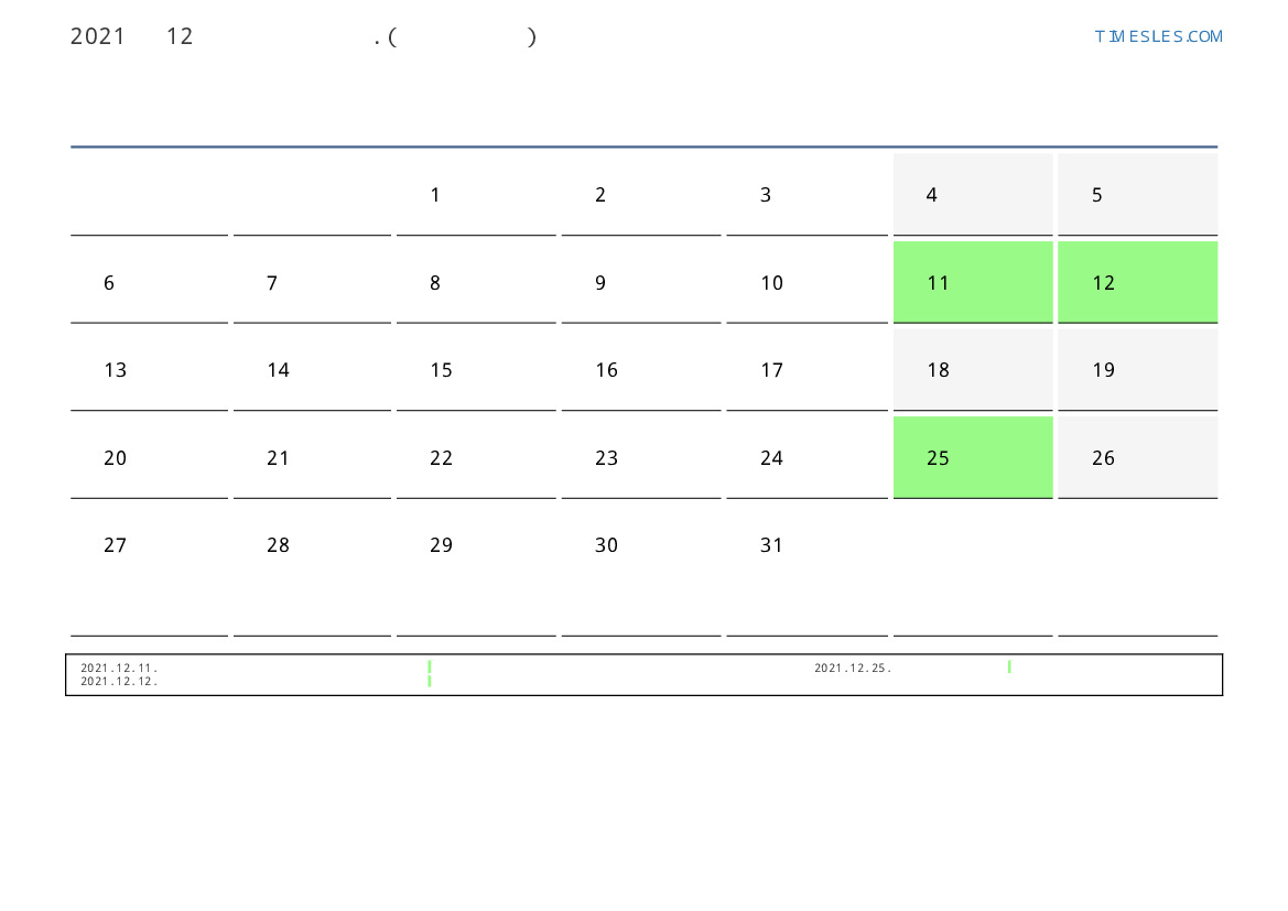 부르 키나 파소 용 2021 년 12월 월 공휴일 및 주말이 포함 된 PDF 캘린더 다운로드 및 인쇄