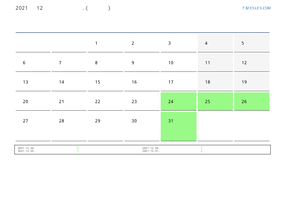 라트비아 용 2021 년 12월 월 공휴일 및 주말이 포함 된 PDF 캘린더 다운로드 및 인쇄