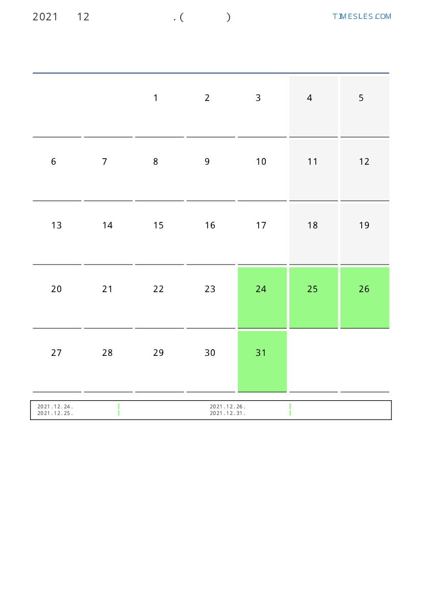라트비아 2021 년 12월 월 공휴일 및 주말 달력
