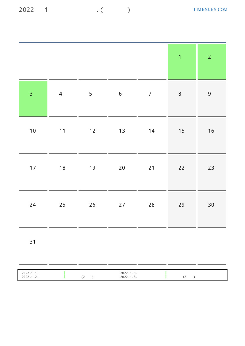 알바니아 2022 년 1월 월 공휴일 및 주말 달력