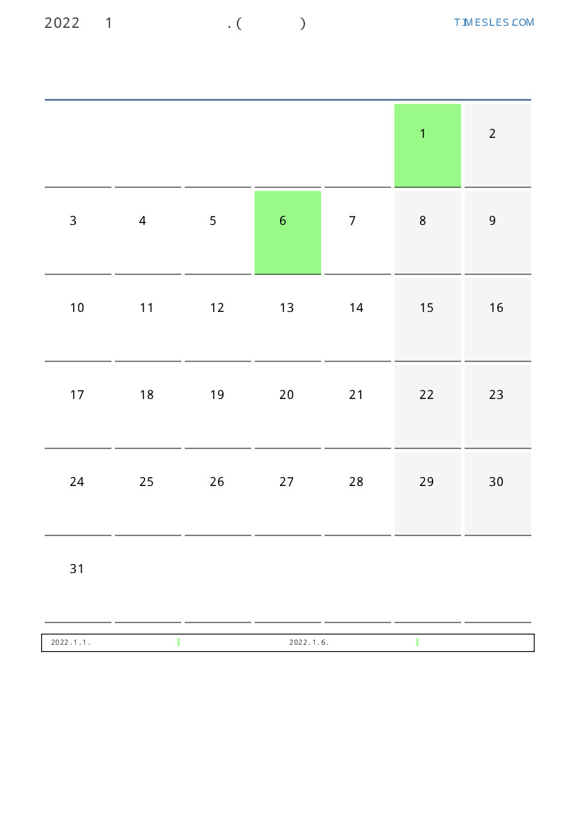 1월에는 31 일 포함됩니다. 이것은 2022 년 1 개월입니다. 올해의 계절 : 겨울. 1월 토요일에 시작하여 월요일에 끝납니다. 2022년 1월에 키프로스 2 공휴일 및 휴무 있습니다.