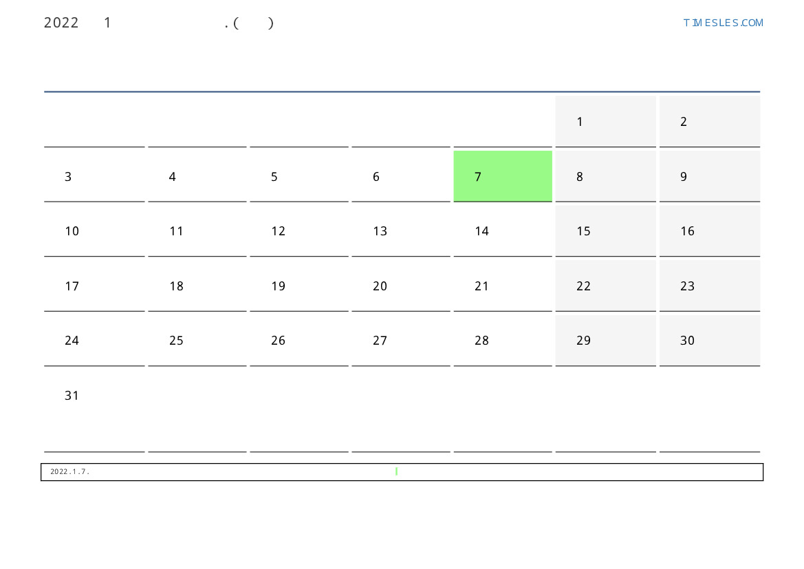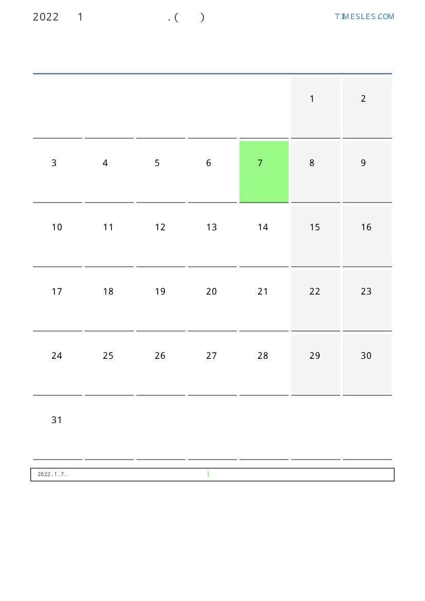 이란 용 2022 년 1월 월 공휴일 및 주말이 포함 된 PDF 캘린더 다운로드 및 인쇄