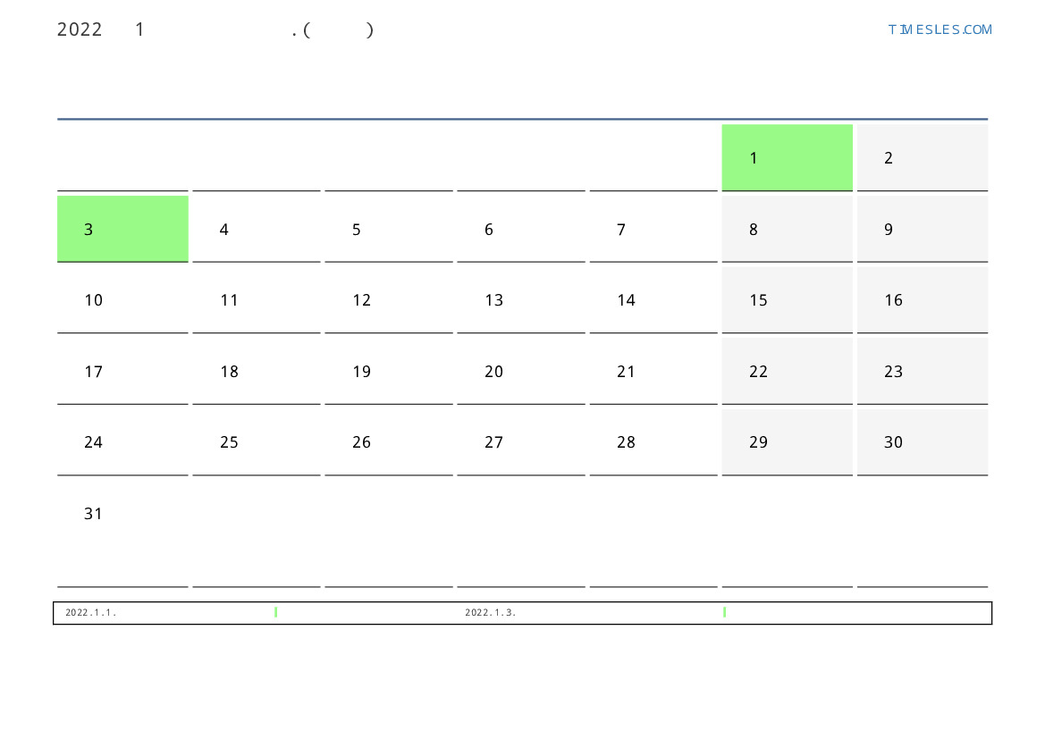 투발루 용 2022 년 1월 월 공휴일 및 주말이 포함 된 PDF 캘린더 다운로드 및 인쇄
