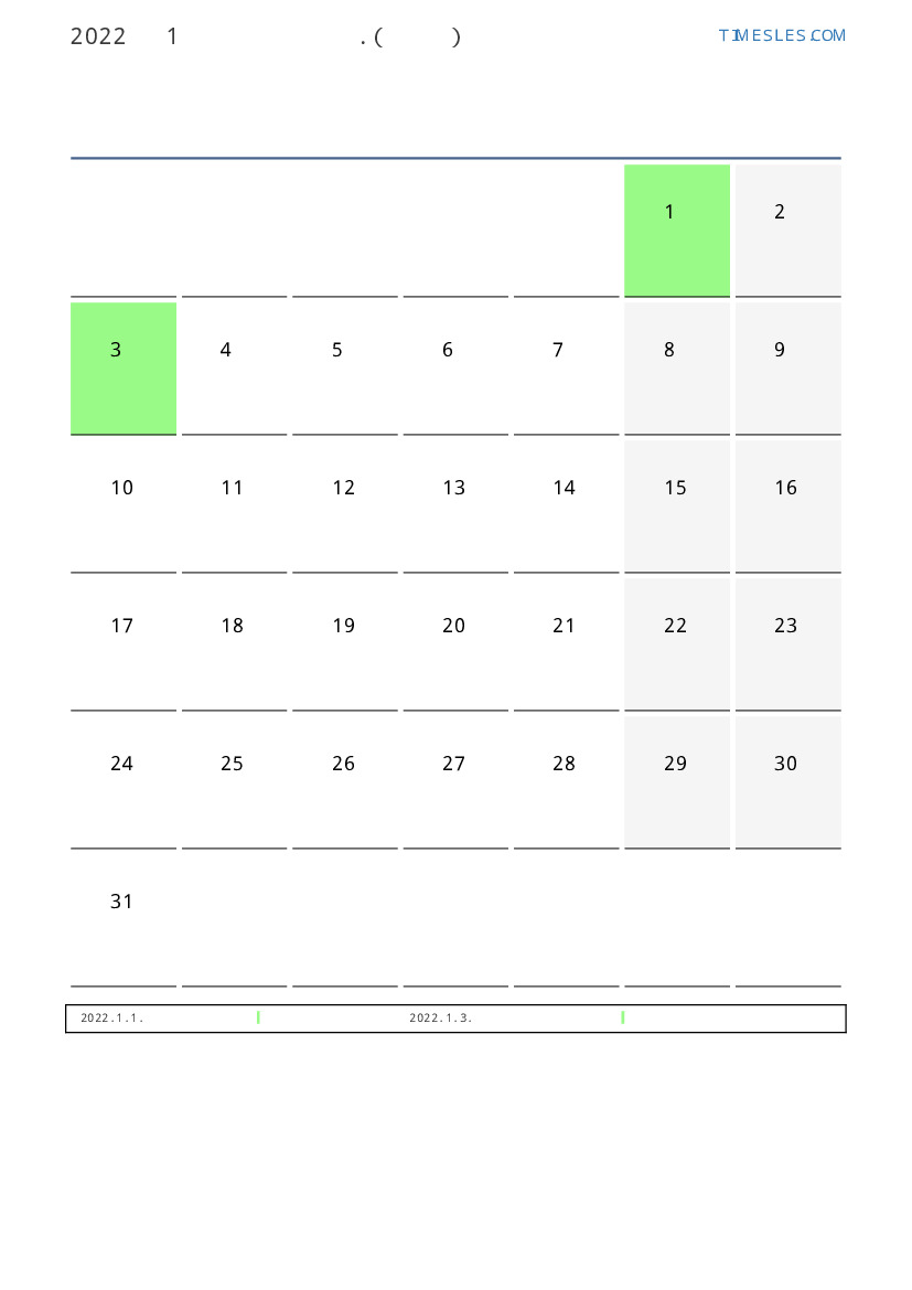 1월에는 31 일 포함됩니다. 이것은 2022 년 1 개월입니다. 올해의 계절 : 겨울. 1월 토요일에 시작하여 월요일에 끝납니다. 2022년 1월에 투발루 2 공휴일 및 휴무 있습니다.