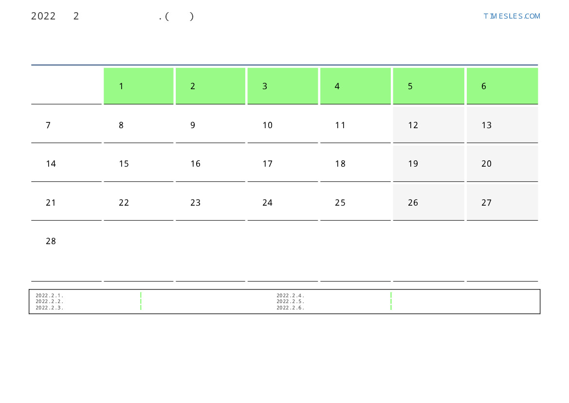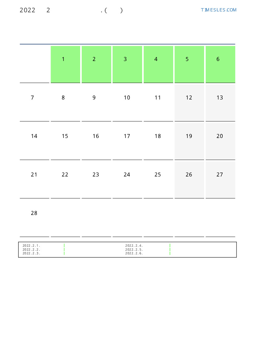 2월에는 28 일 포함됩니다. 이것은 2022 년 2 개월입니다. 올해의 계절 : 겨울. 2월 화요일에 시작하여 월요일에 끝납니다. 2022년 2월에 중국에서 7 공휴일 및 휴무 있습니다.