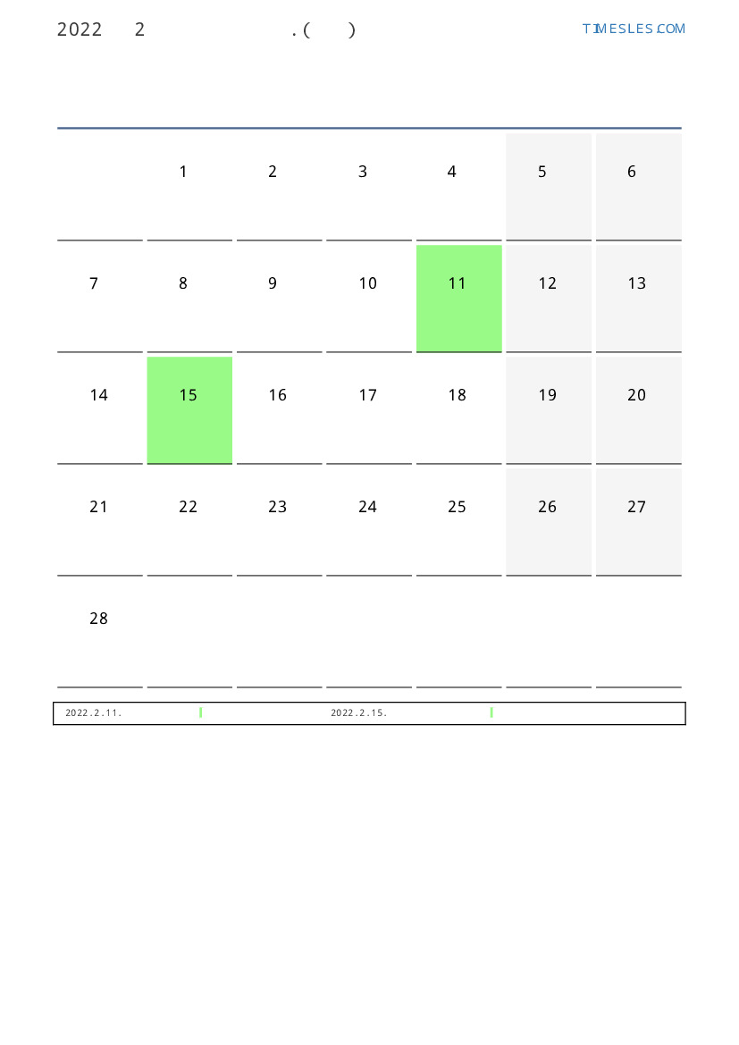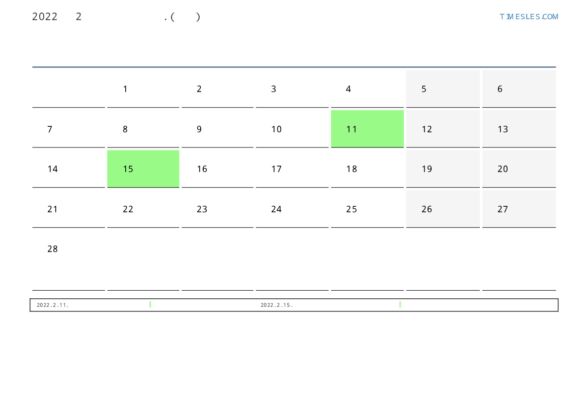 이란 용 2022 년 2월 월 공휴일 및 주말이 포함 된 PDF 캘린더 다운로드 및 인쇄