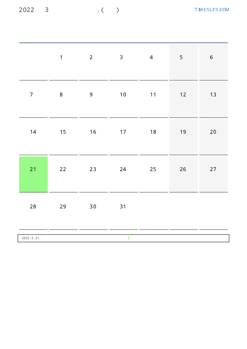 일본 용 2022 년 3월 월 공휴일 및 주말이 포함 된 PDF 캘린더 다운로드 및 인쇄