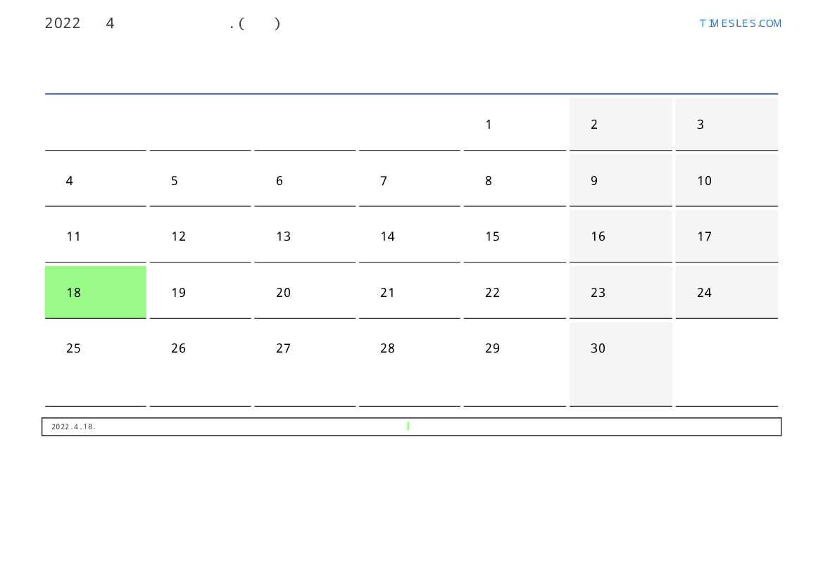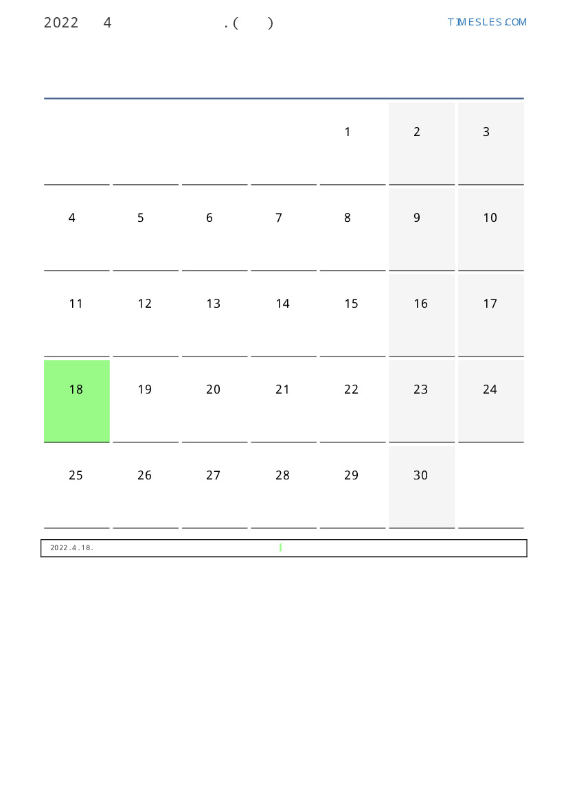 4월에는 30 일 포함됩니다. 이것은 2022 년 4 개월입니다. 올해의 계절 : 봄. 4월 금요일에 시작하여 토요일에 끝납니다. 2022년 4월에 콩고 2 공휴일 및 휴무 있습니다.