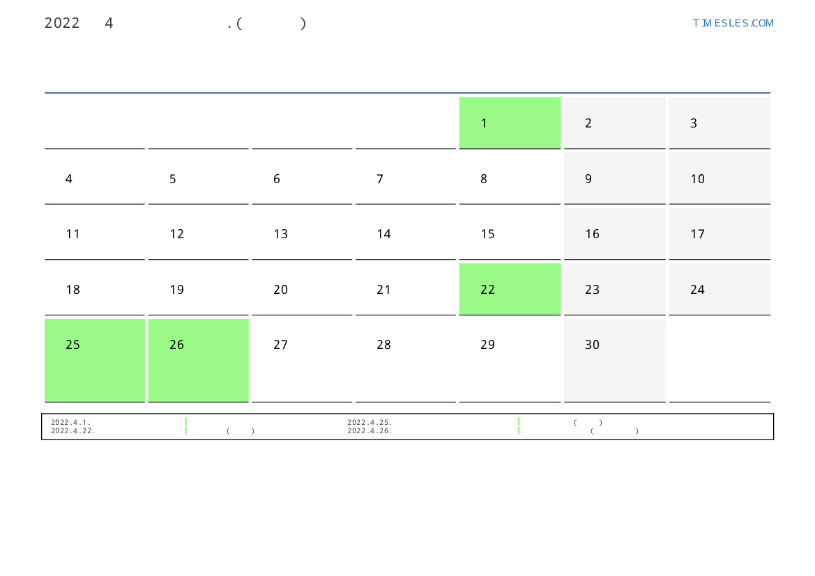 키프로스 2022 년 4월 월 공휴일 및 주말 달력