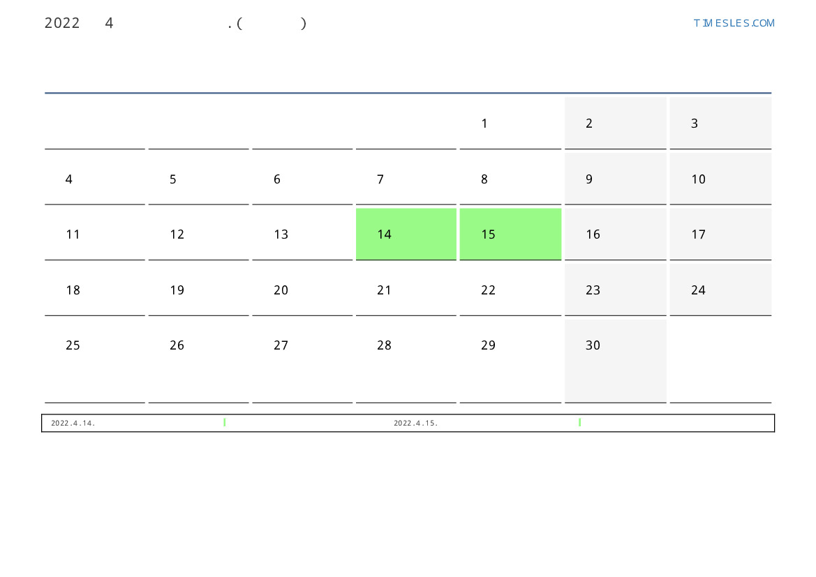 파라과이 용 2022 년 4월 월 공휴일 및 주말이 포함 된 PDF 캘린더 다운로드 및 인쇄