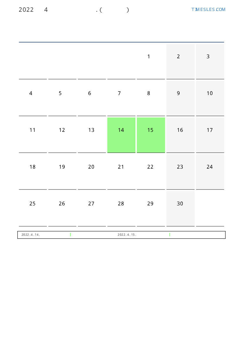 4월에는 30 일 포함됩니다. 이것은 2022 년 4 개월입니다. 올해의 계절 : 봄. 4월 금요일에 시작하여 토요일에 끝납니다. 2022년 4월에 파라과이 2 공휴일 및 휴무 있습니다.