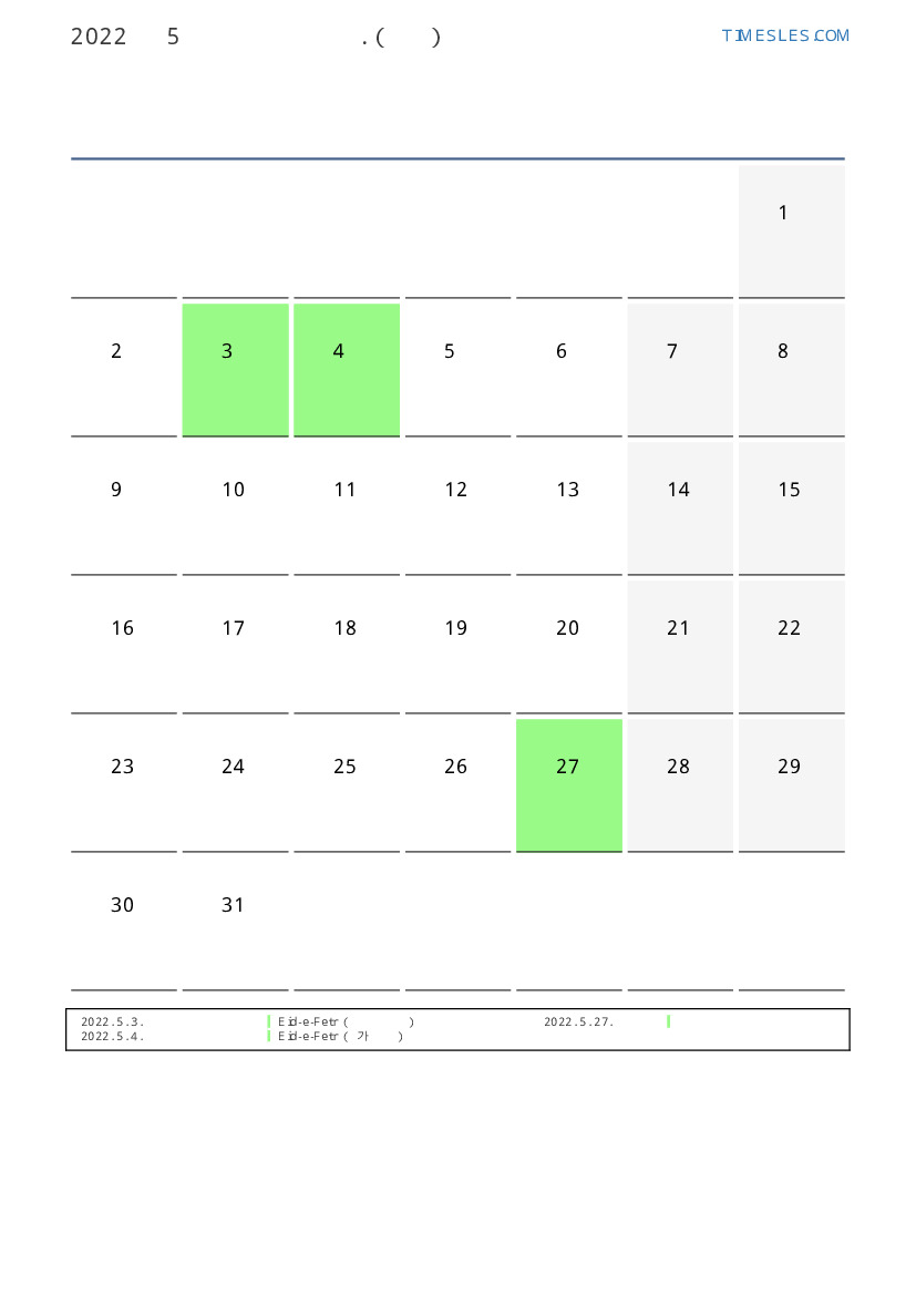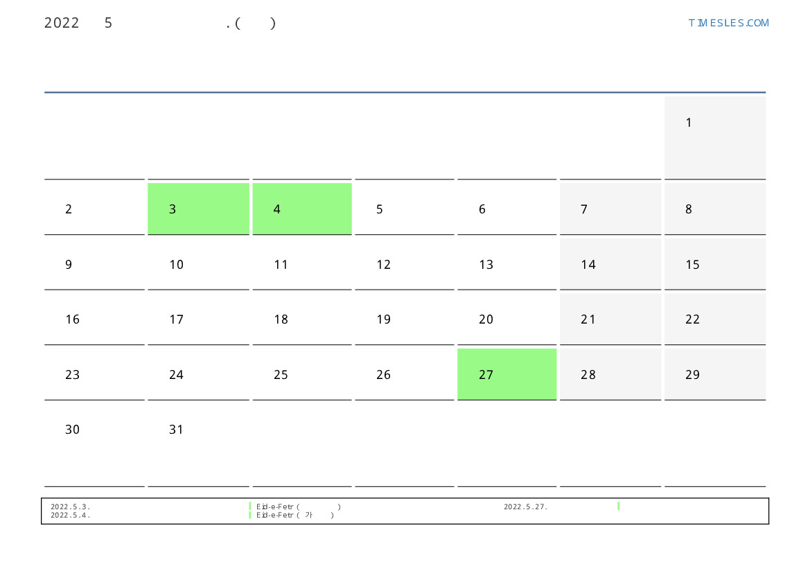 2022. 5. 4. Eid-e-Fetr (추가 휴일)