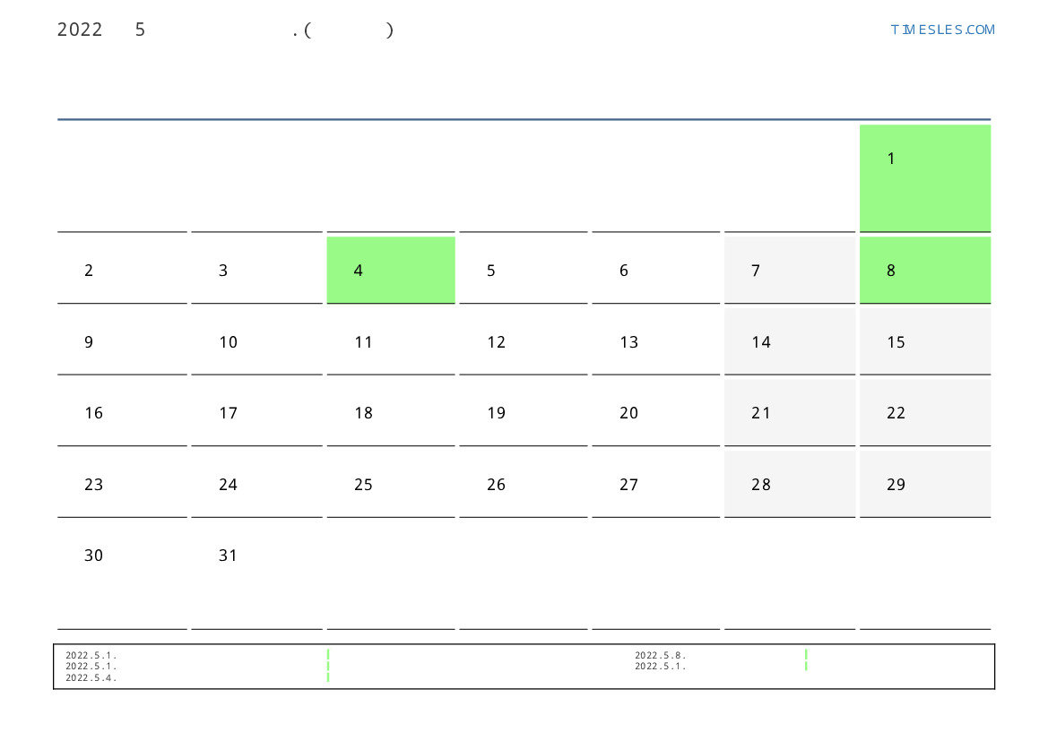 라트비아 2022 년 5월 월 공휴일 및 주말 달력