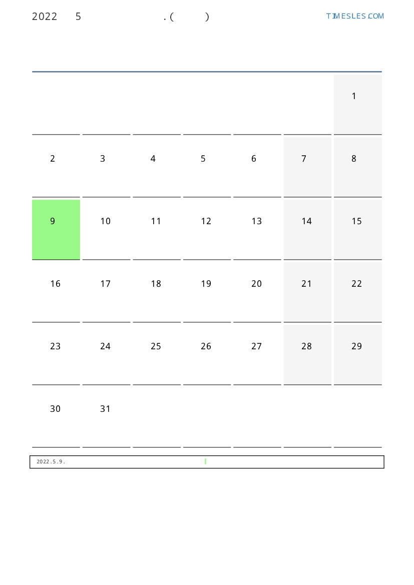 5월에는 31 일 포함됩니다. 이것은 2022 년 5 개월입니다. 올해의 계절 : 봄. 5월 일요일에 시작하여 화요일에 끝납니다. 2022년 5월에 사모아 1 공휴일 및 휴무 있습니다.
