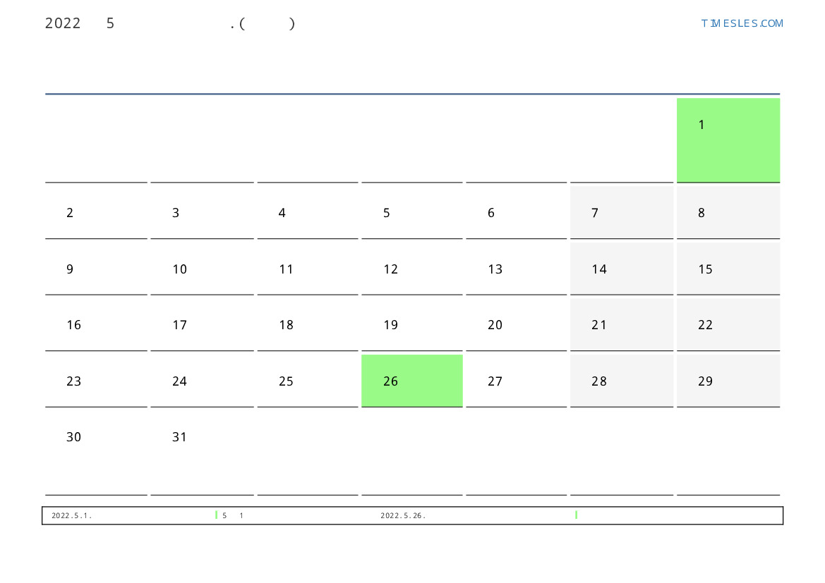 스웨덴 2022 년 5월 월 공휴일 및 주말 달력