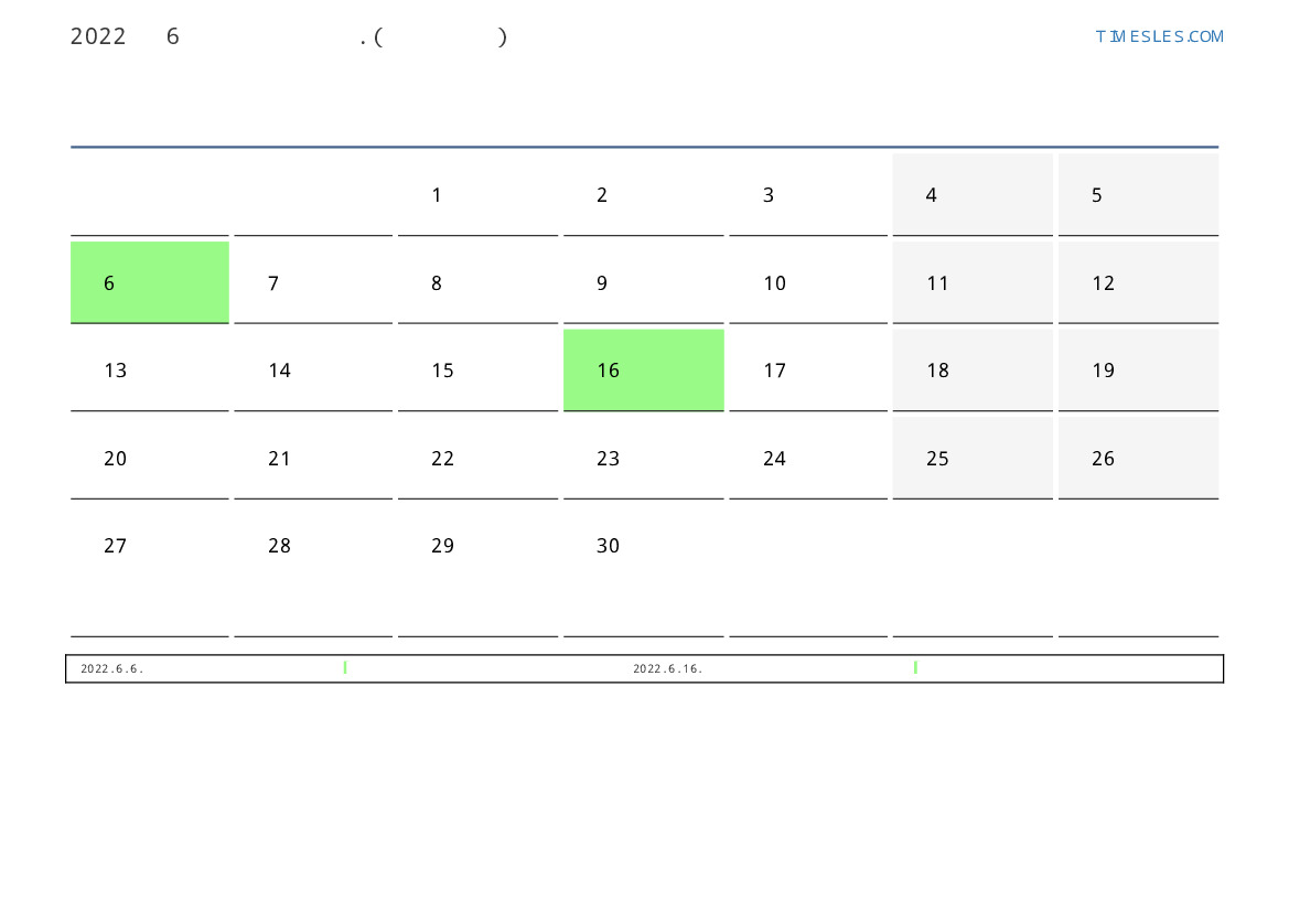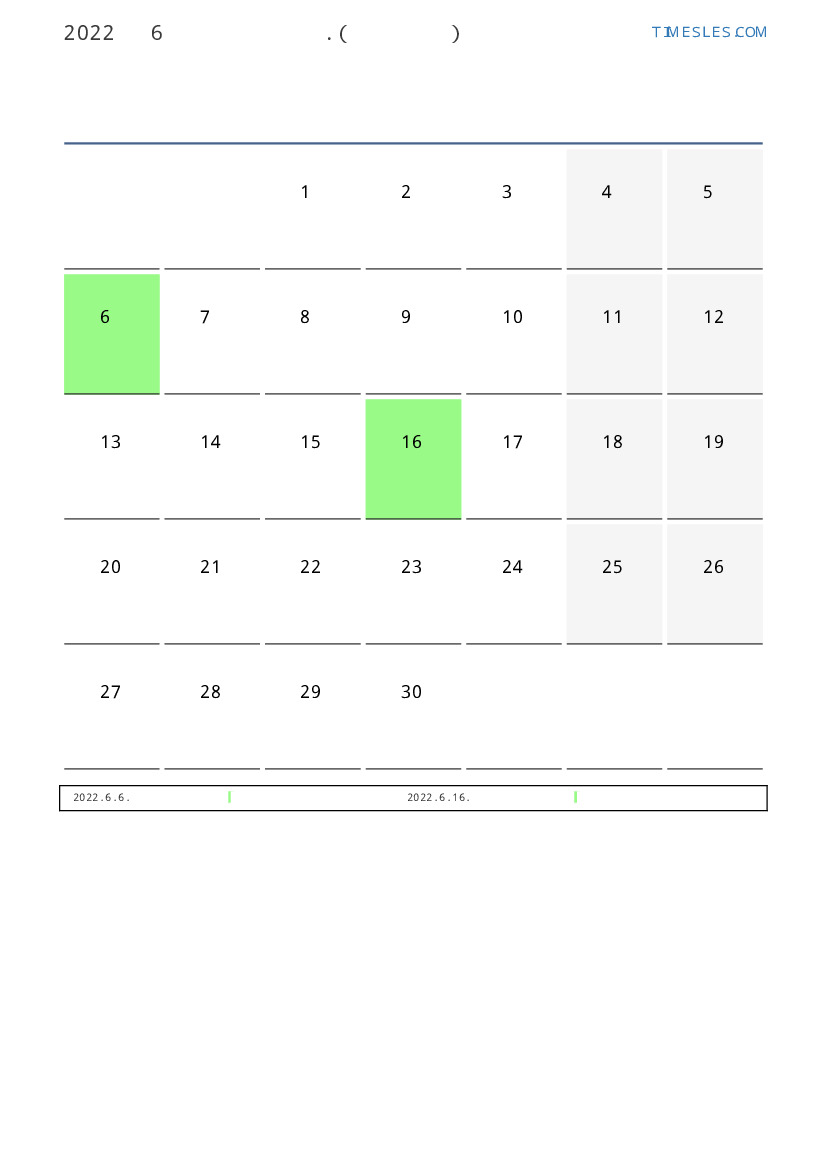 6월에는 30 일 포함됩니다. 이것은 2022 년 6 개월입니다. 올해의 계절 : 여름. 6월 수요일에 시작하여 목요일에 끝납니다. 2022년 6월에 오스트리아 4 공휴일 및 휴무 있습니다.