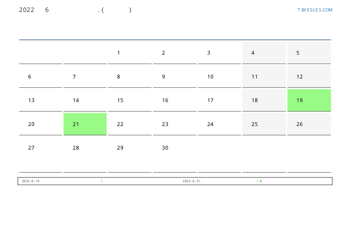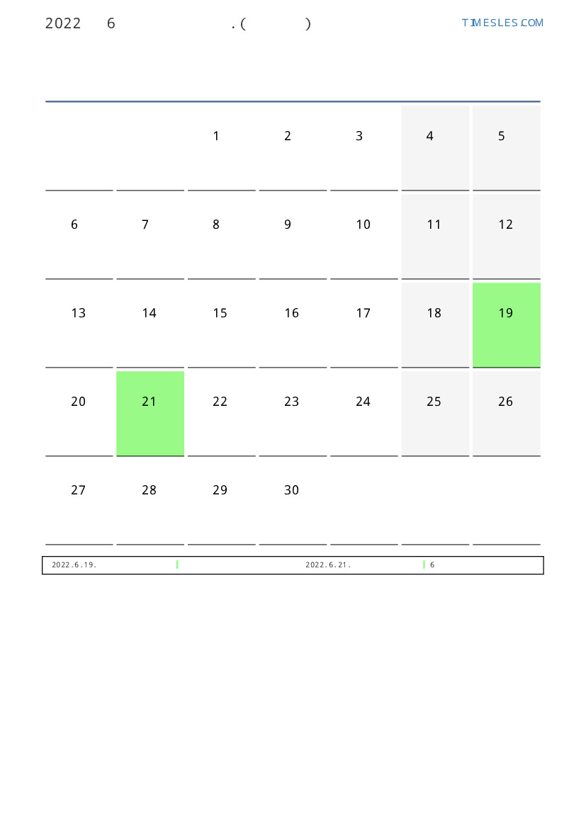 보츠와나 용 2022 년 6월 월 공휴일 및 주말이 포함 된 PDF 캘린더 다운로드 및 인쇄