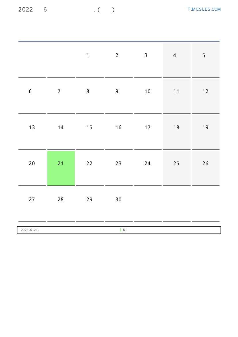 일본 용 2022 년 6월 월 공휴일 및 주말이 포함 된 PDF 캘린더 다운로드 및 인쇄