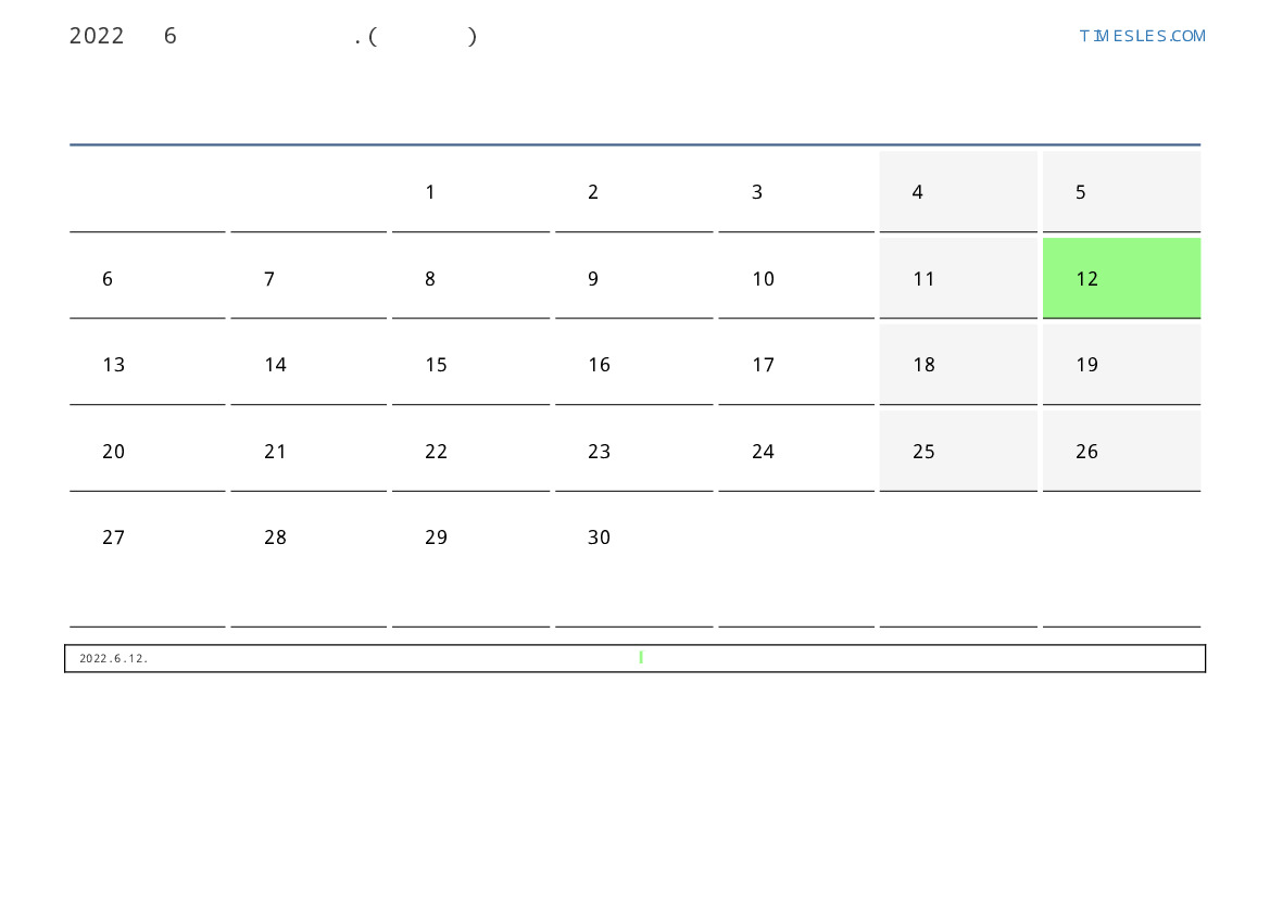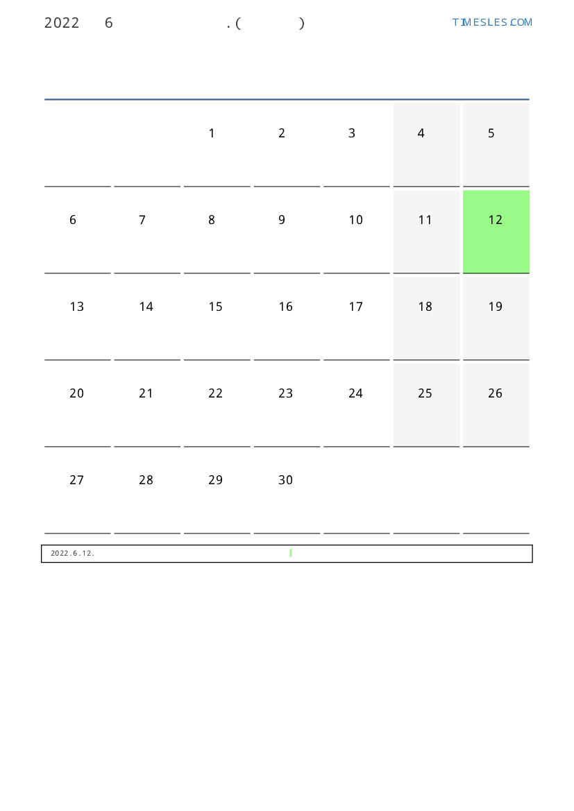 파라과이 용 2022 년 6월 월 공휴일 및 주말이 포함 된 PDF 캘린더 다운로드 및 인쇄