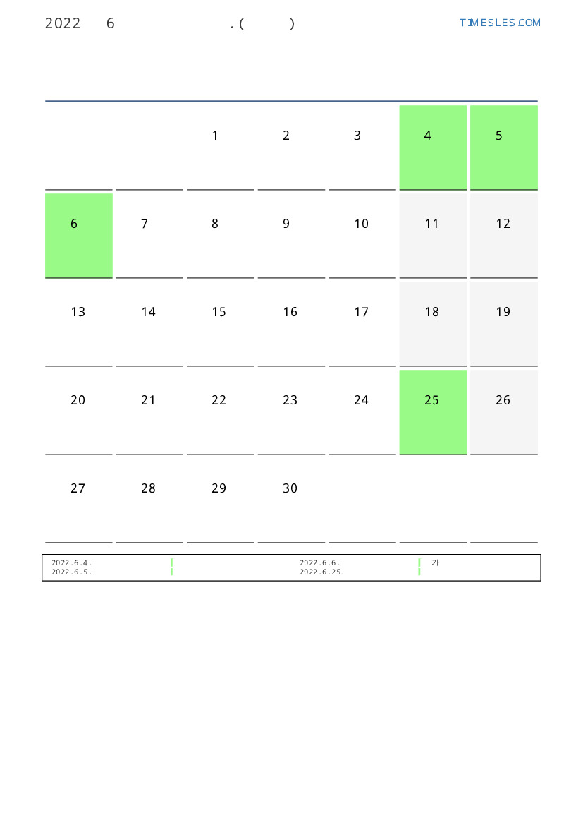 스웨덴 2022 년 6월 월 공휴일 및 주말 달력