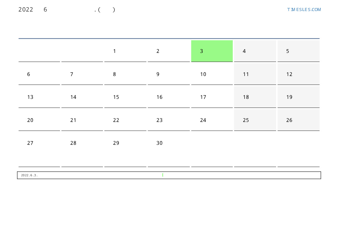6월에는 30 일 포함됩니다. 이것은 2022 년 6 개월입니다. 올해의 계절 : 여름. 6월 수요일에 시작하여 목요일에 끝납니다. 2022년 6월에 태국에서 2 공휴일 및 휴무 있습니다.