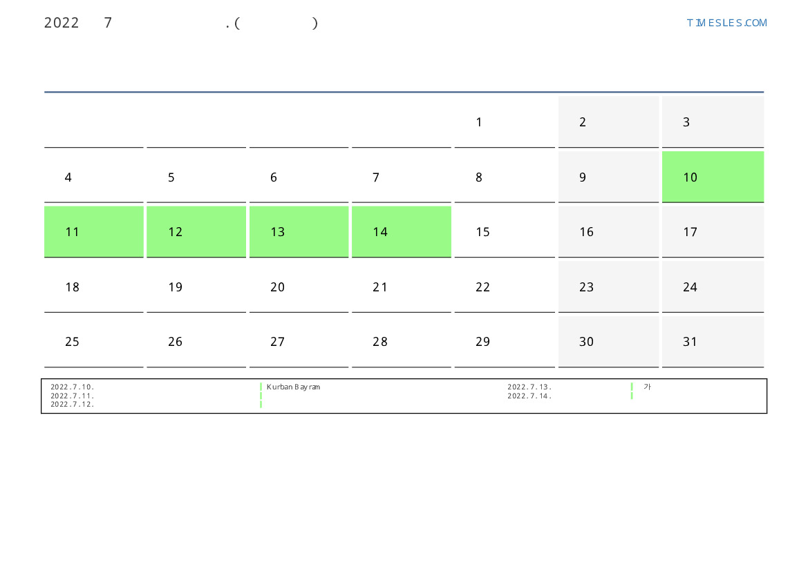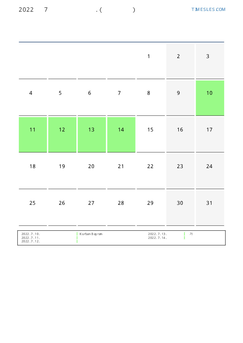 2022. 7. 14. 국정 일 휴일