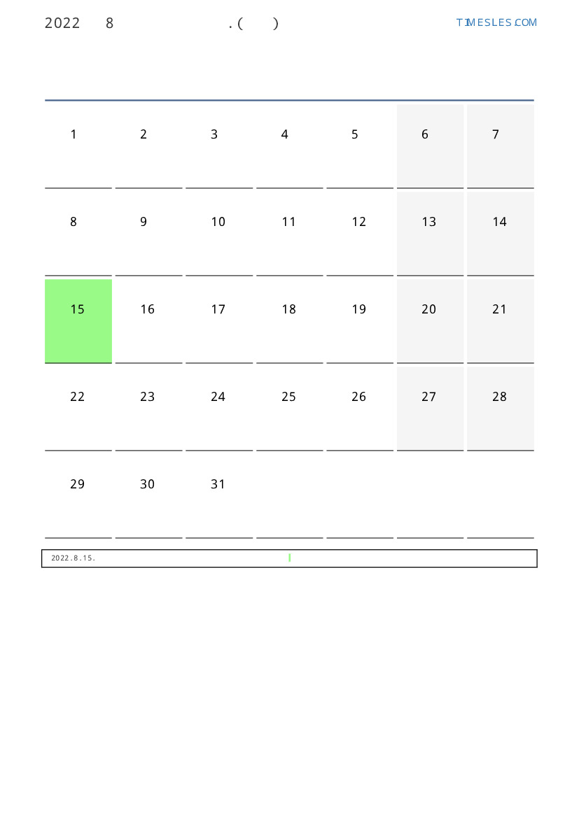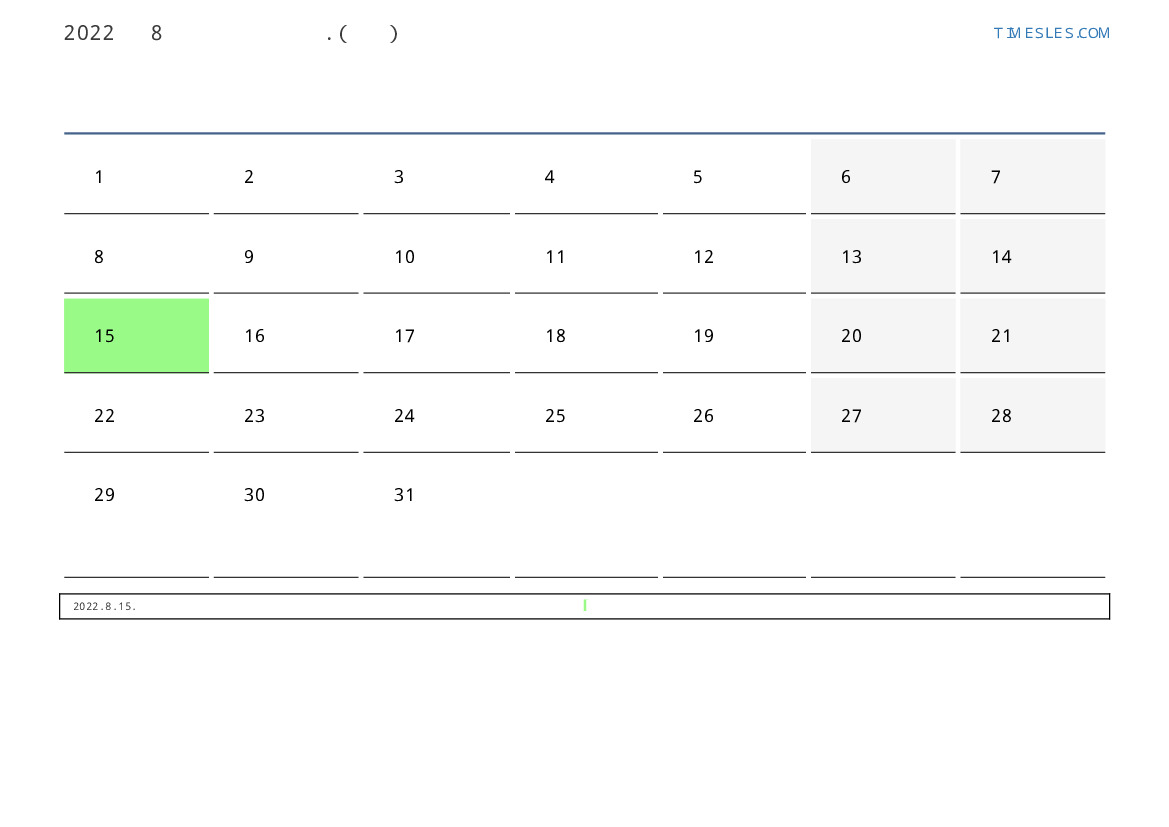콩고 용 2022 년 8월 월 공휴일 및 주말이 포함 된 PDF 캘린더 다운로드 및 인쇄