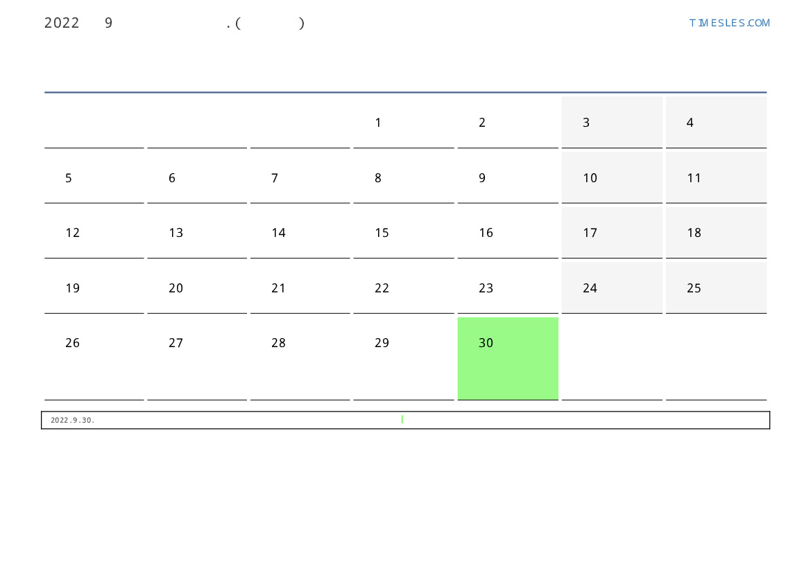 보츠와나 2022 년 9월 월 공휴일 및 주말 달력
