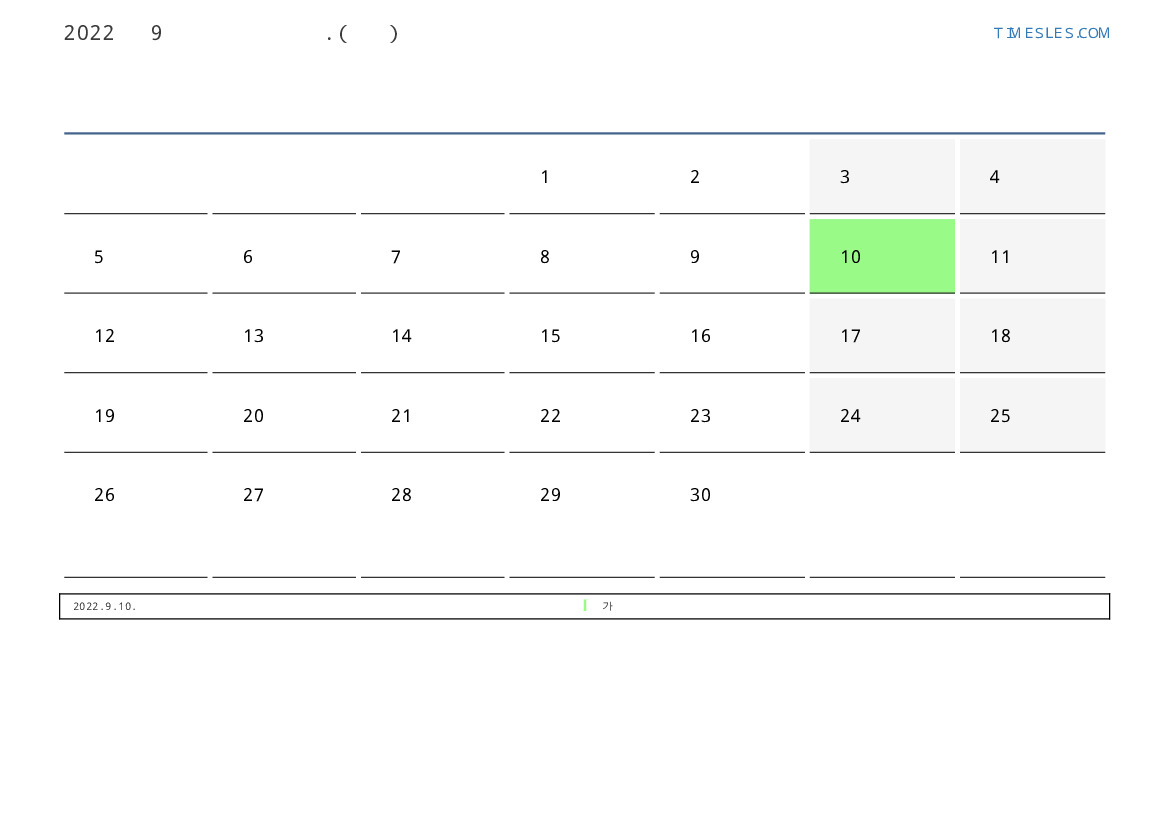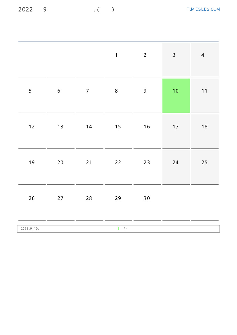 중국 2022 년 9월 월 공휴일 및 주말 달력
