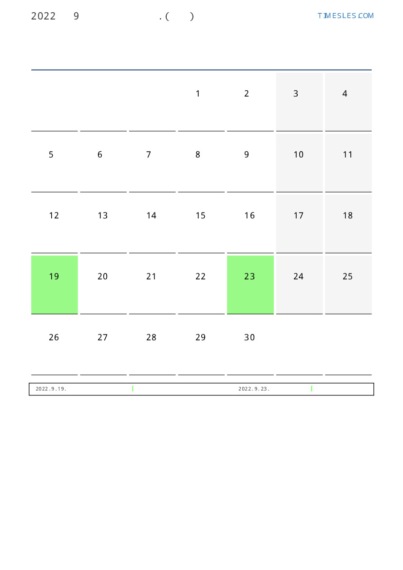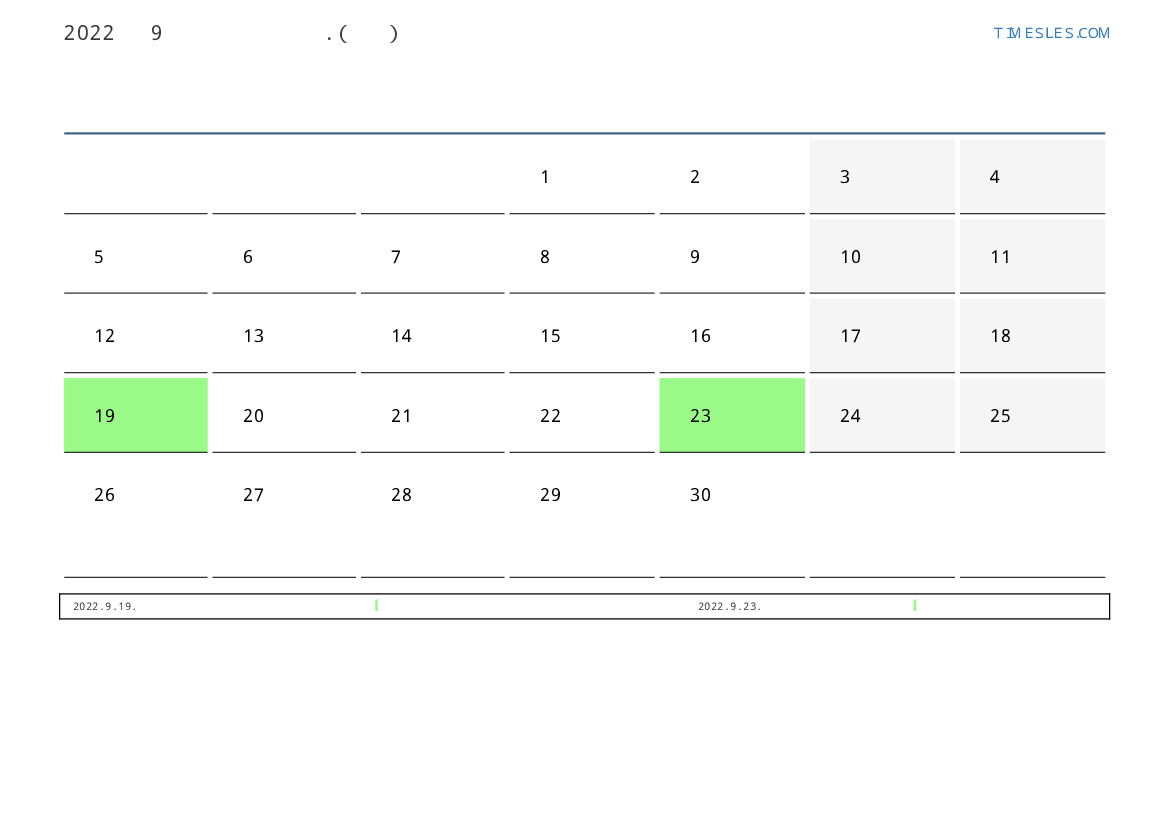 일본 용 2022 년 9월 월 공휴일 및 주말이 포함 된 PDF 캘린더 다운로드 및 인쇄