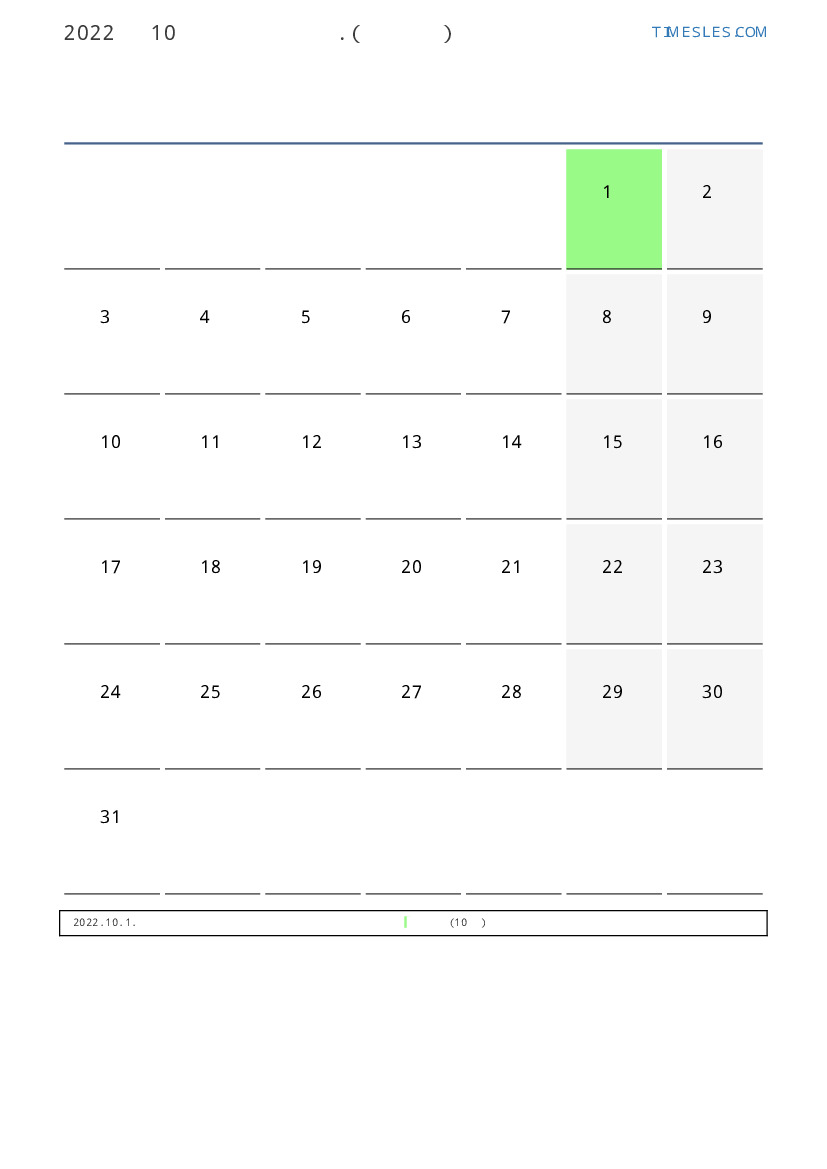 보츠와나 2022 년 10월 월 공휴일 및 주말 달력