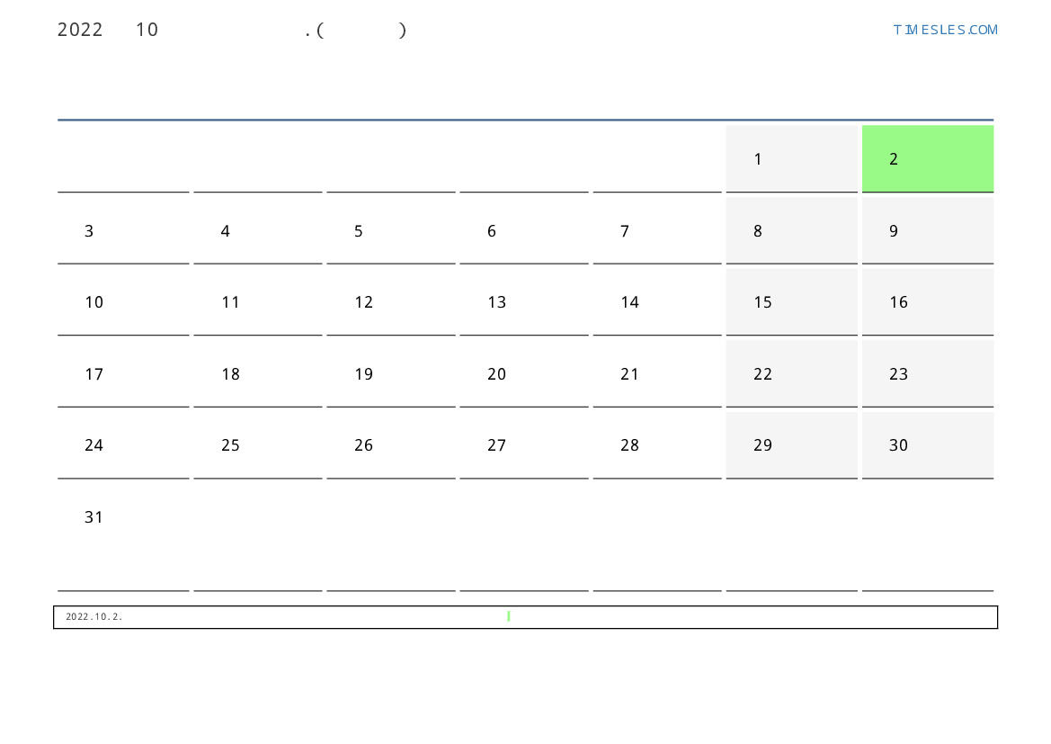 10월에는 31 일 포함됩니다. 이것은 2022 년 10 개월입니다. 올해의 계절 : 가을. 10월 토요일에 시작하여 월요일에 끝납니다. 2022년 10월에 파라과이 1 공휴일 및 휴무 있습니다.