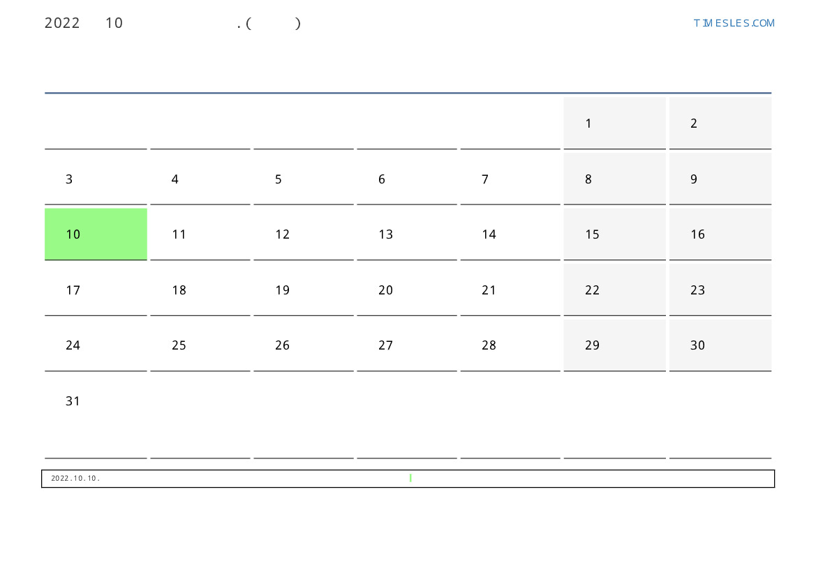 사모아 2022 년 10월 월 공휴일 및 주말 달력