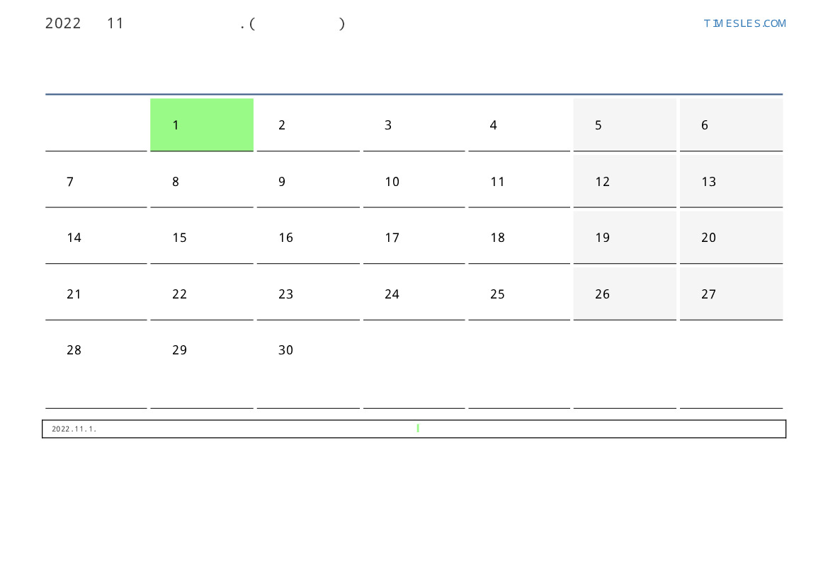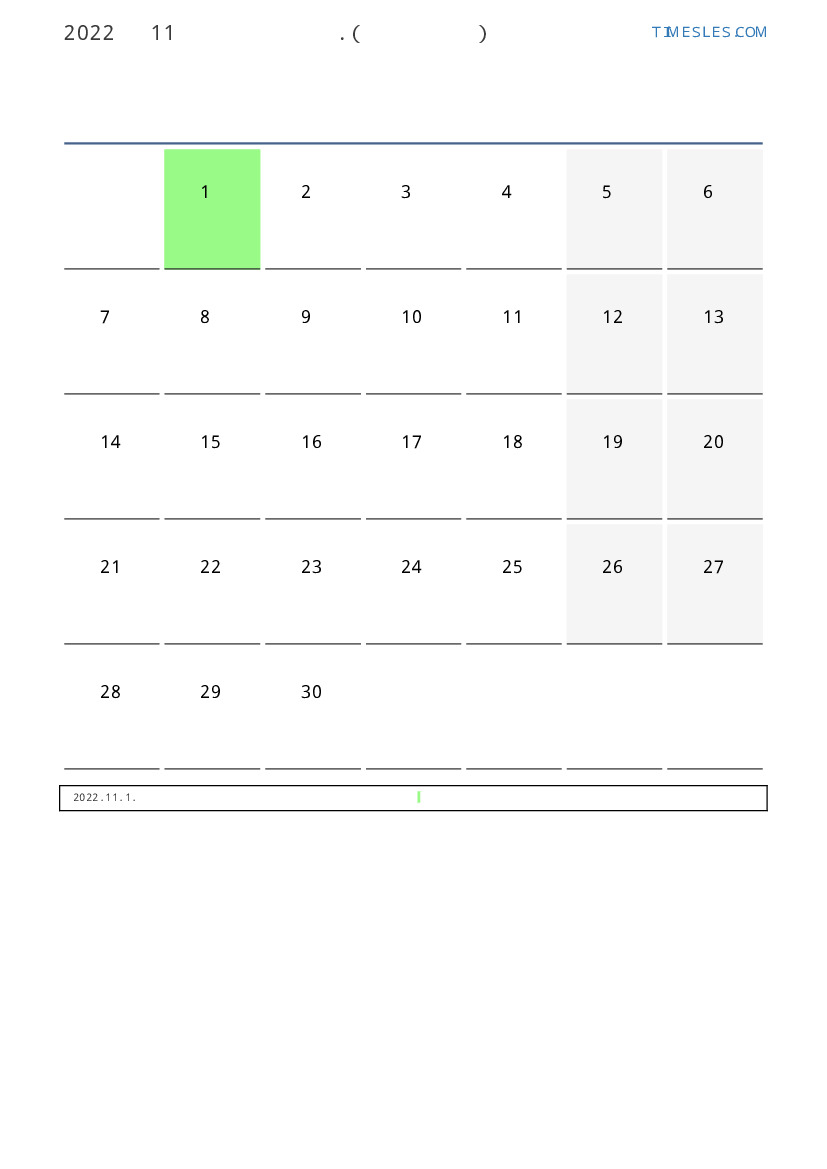 11월에는 30 일 포함됩니다. 이것은 2022 년 11 개월입니다. 올해의 계절 : 가을. 11월 화요일에 시작하여 수요일에 끝납니다. 2022년 11월에 부르 키나 파소 1 공휴일 및 휴무 있습니다.