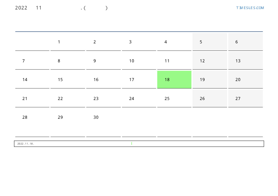 11월에는 30 일 포함됩니다. 이것은 2022 년 11 개월입니다. 올해의 계절 : 가을. 11월 화요일에 시작하여 수요일에 끝납니다. 2022년 11월에 라트비아 1 공휴일 및 휴무 있습니다.