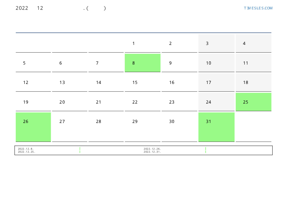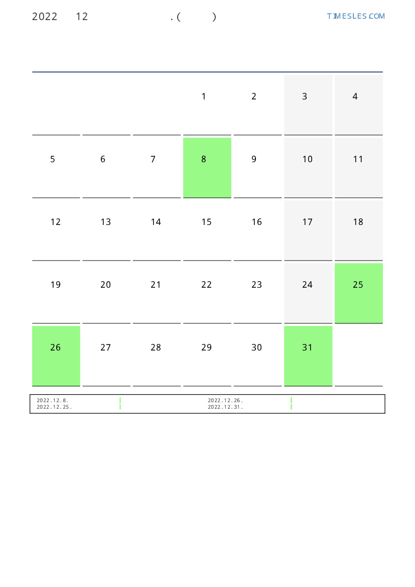 스위스 2022 년 12월 월 공휴일 및 주말 달력