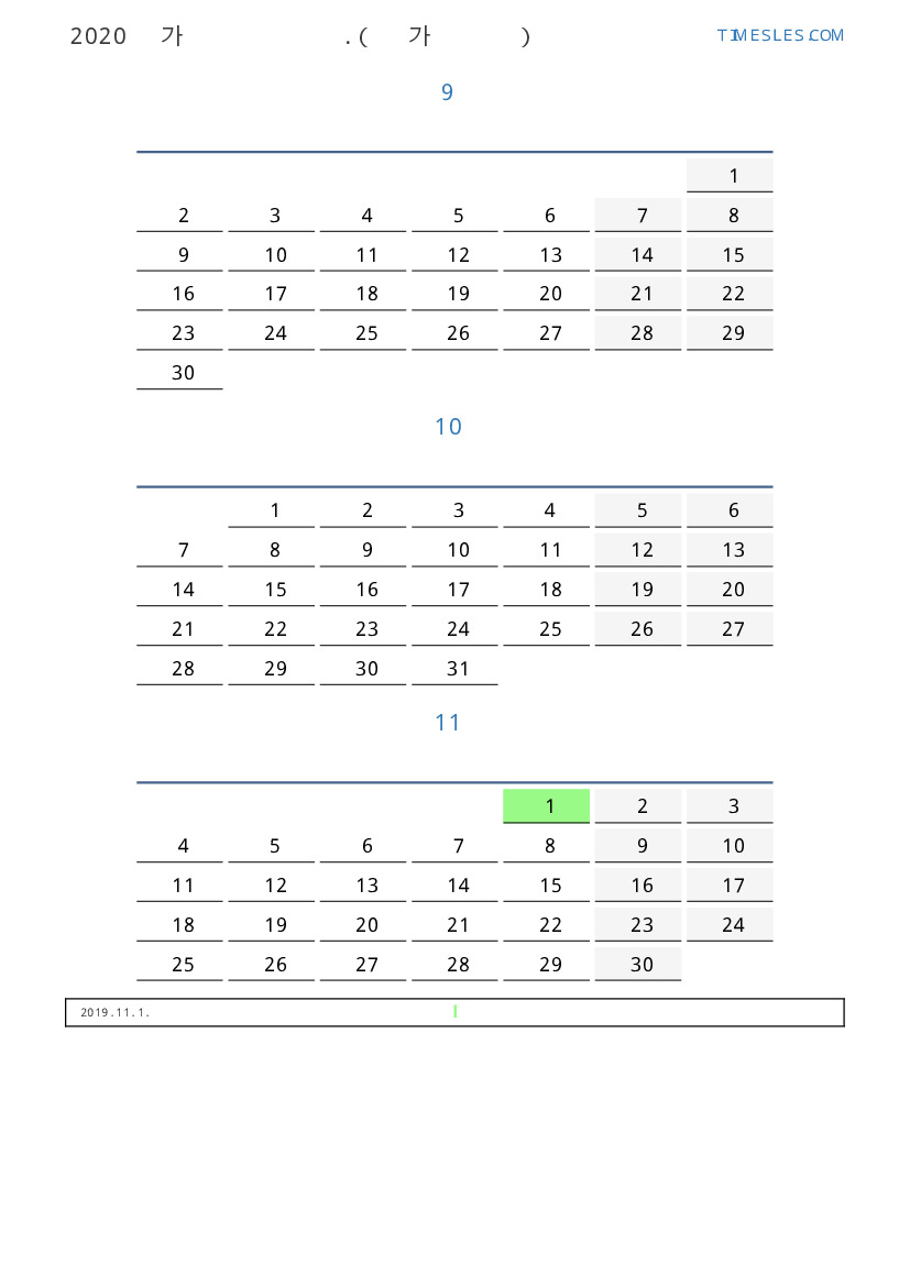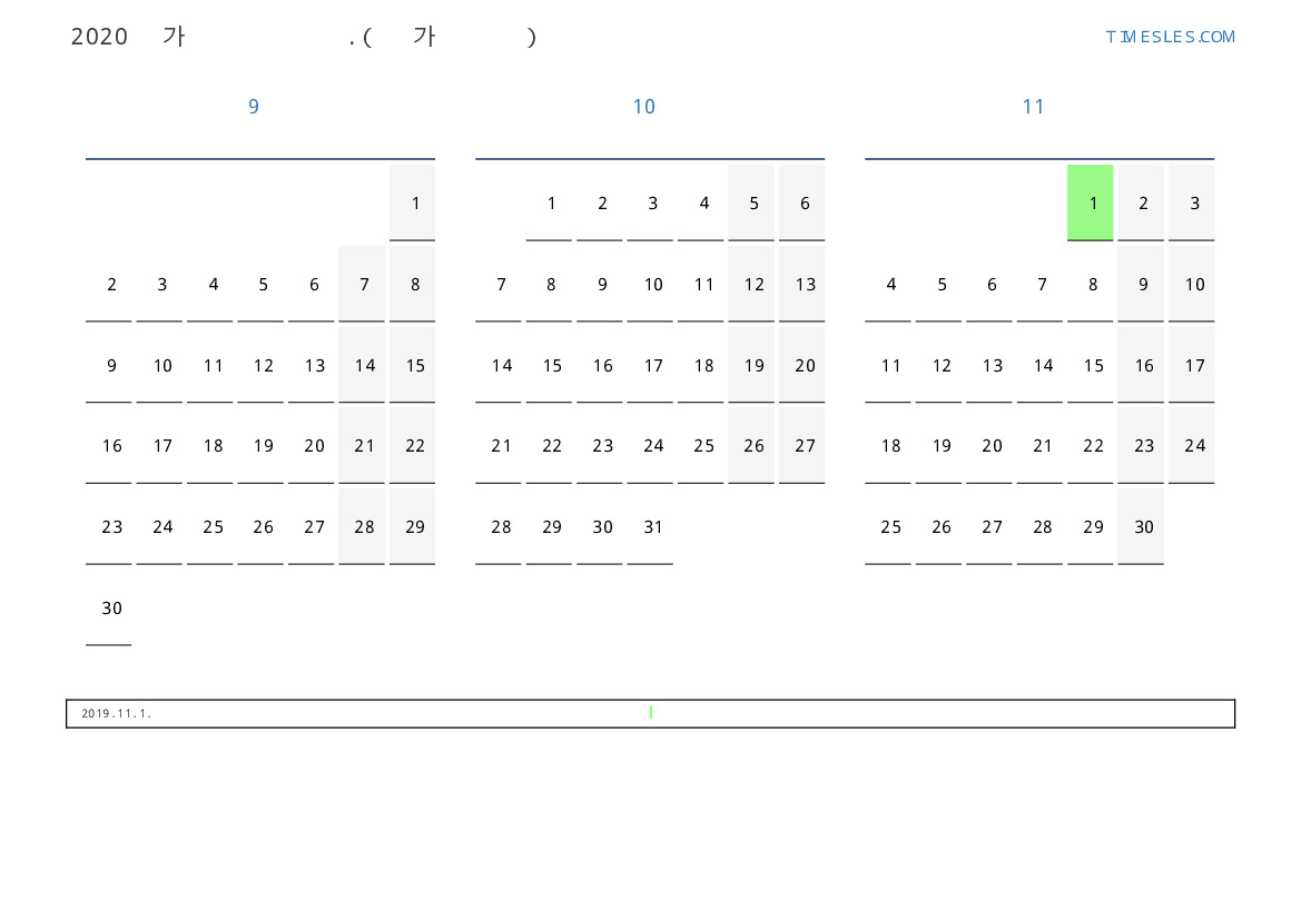 안티구아 및 바부 다 2019 년 가을을 위해 공휴일 및 주말이 포함 된 PDF 캘린더 다운로드 및 인쇄