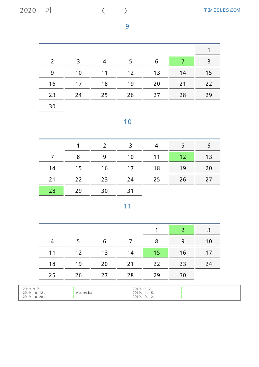 브라질 2019 년 가을을 위해 달력