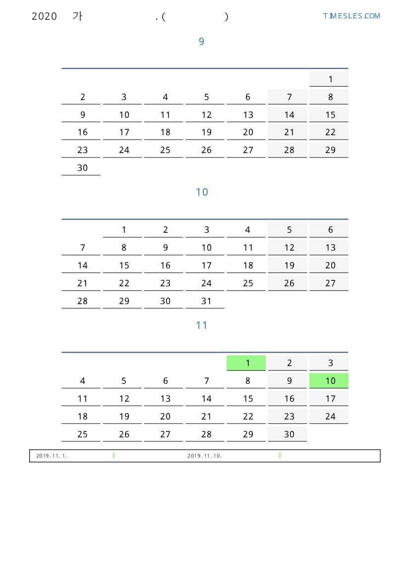 부르 키나 파소 2019 년 가을을 위해 공휴일 및 주말이 포함 된 PDF 캘린더 다운로드 및 인쇄